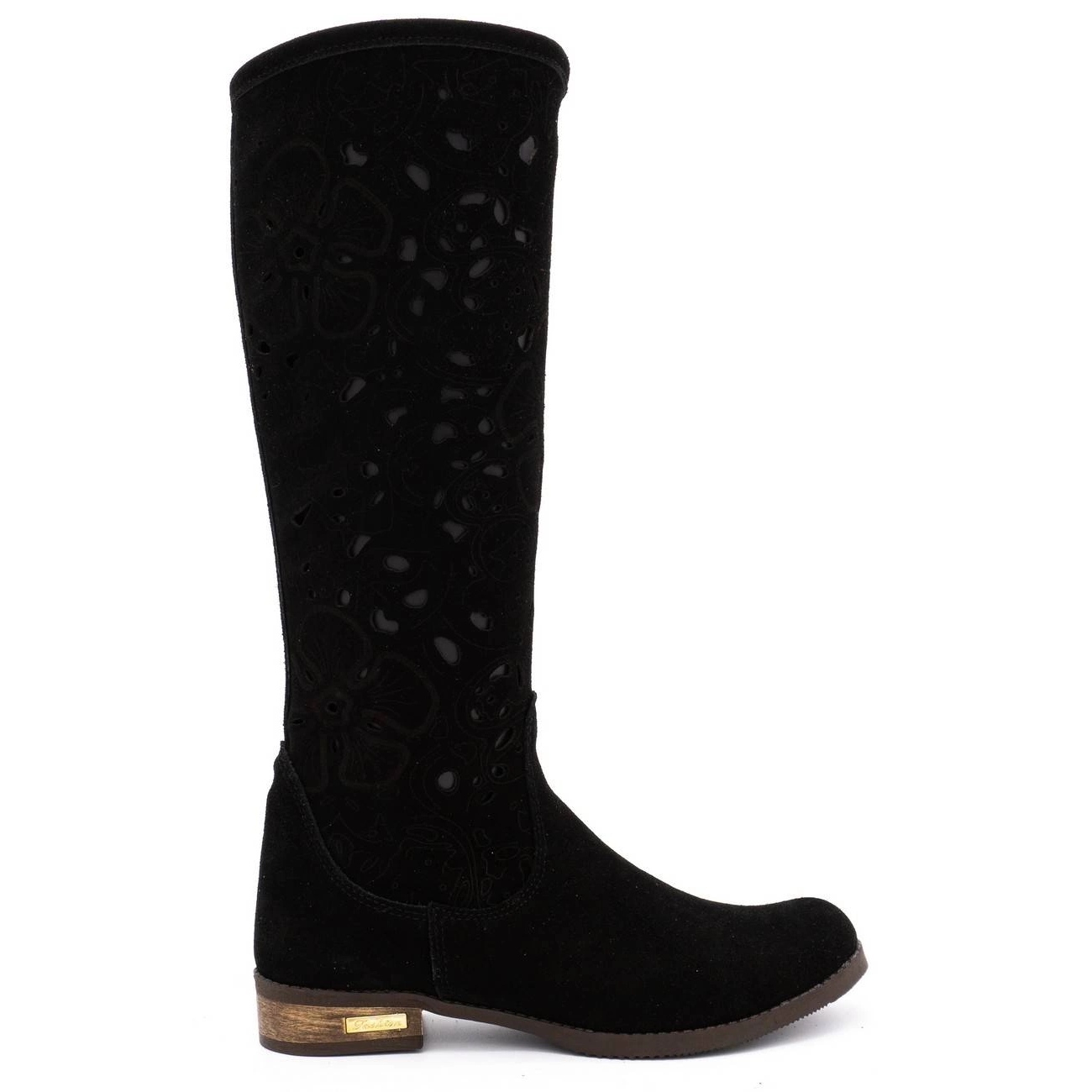 Elegantní ženské boty vyrobené z přirozeného Nubucku, kombinující pohodlí nošení s ženským vzorem s otevřeným dílem s květinami. Měkká pokožka se dokonale přizpůsobuje tele a geometrické výřezy zajišťují přiměřené prodyšné - ideální pro jaro a podzim. Klasická délka kolena znamená, že boty odpovídají šatům i sukním nebo namontovaným kalhotám.