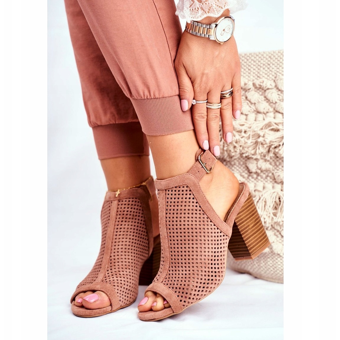 FB1 FB1 Dámské prolamované boty Peep Toe Pink Paradise hnědý