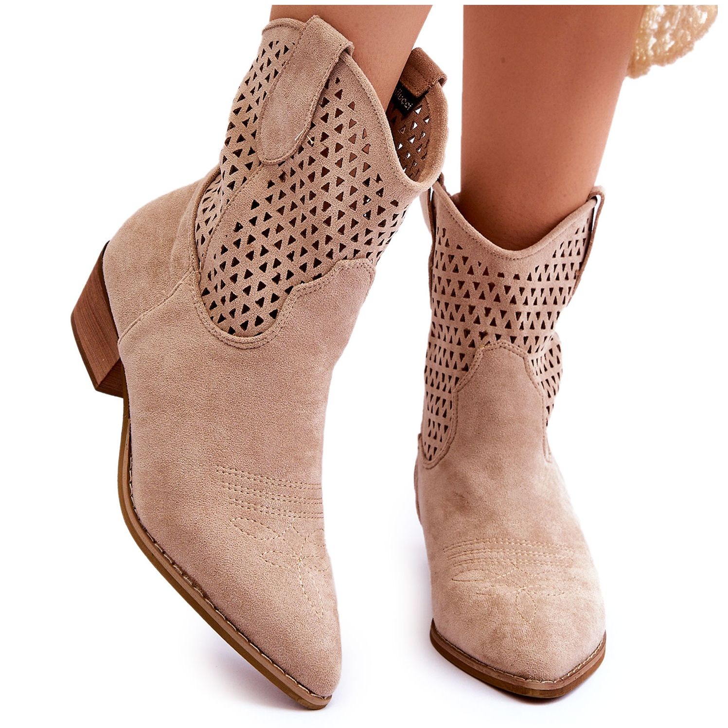 Inna marka Dámské prolamované kovbojské boty Béžové rákosové béžový