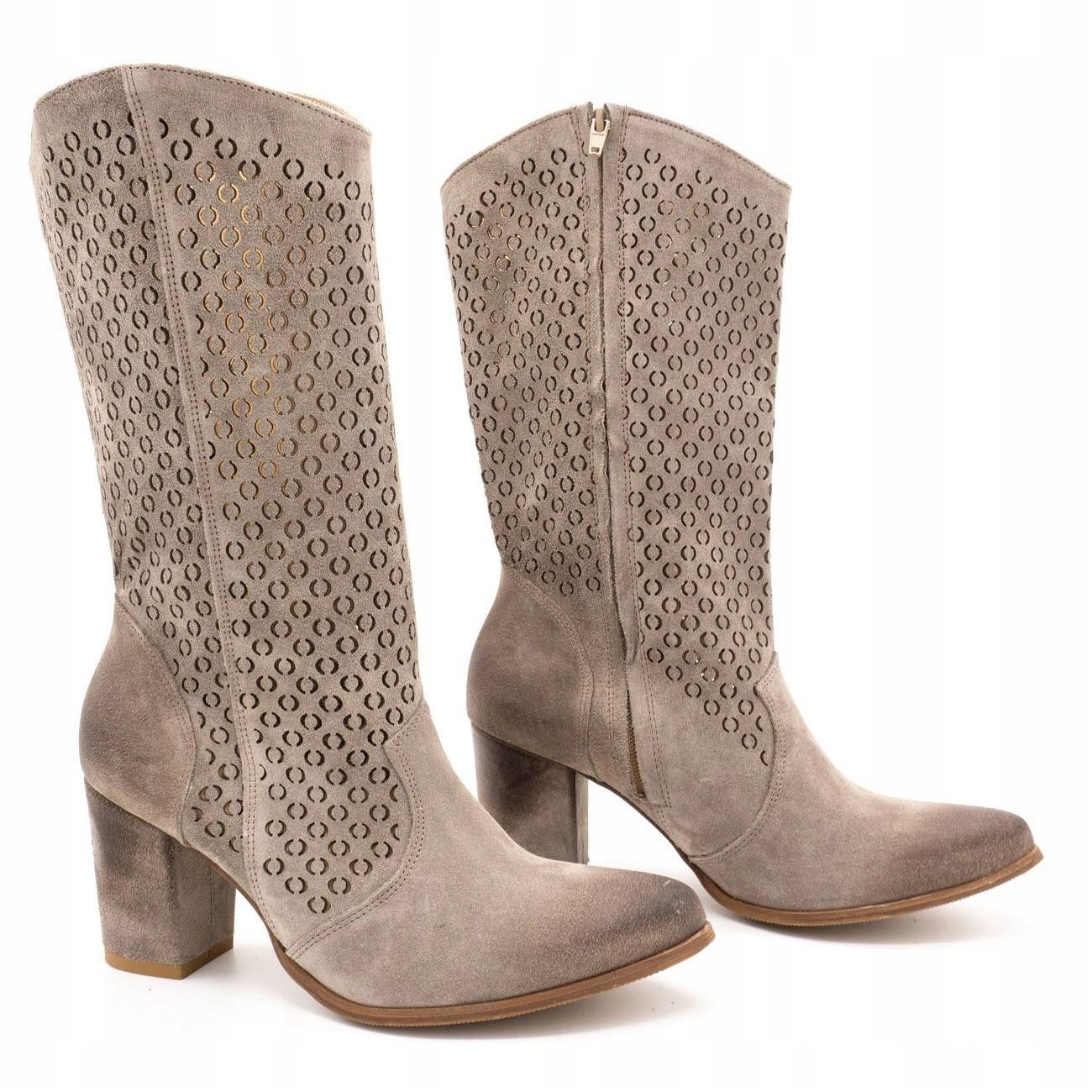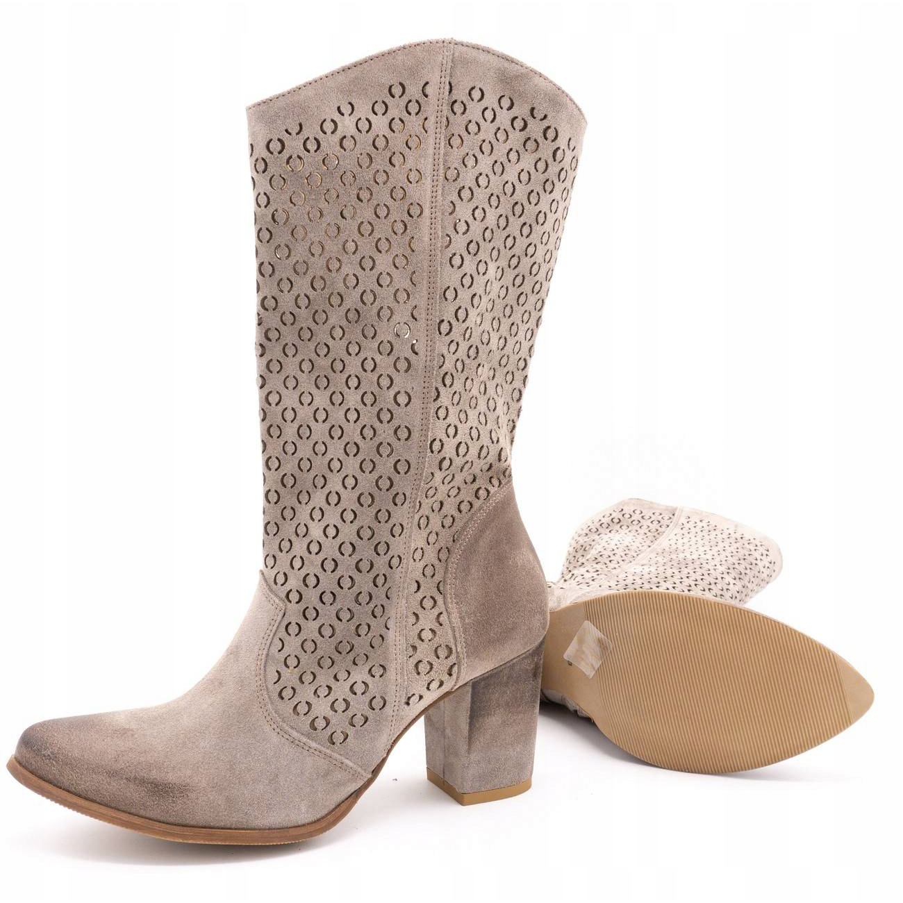 Dámské prolamované kožené kozačky na vysokém podpatku 1224 v šedé barvě od renomované polské značky Exousite jsou výbornou volbou pro ženy hledající eleganci a pohodlí. Tyto boty vyrobené z měkkého přírodního semiše kombinují vysoce kvalitní materiály s moderním designem.