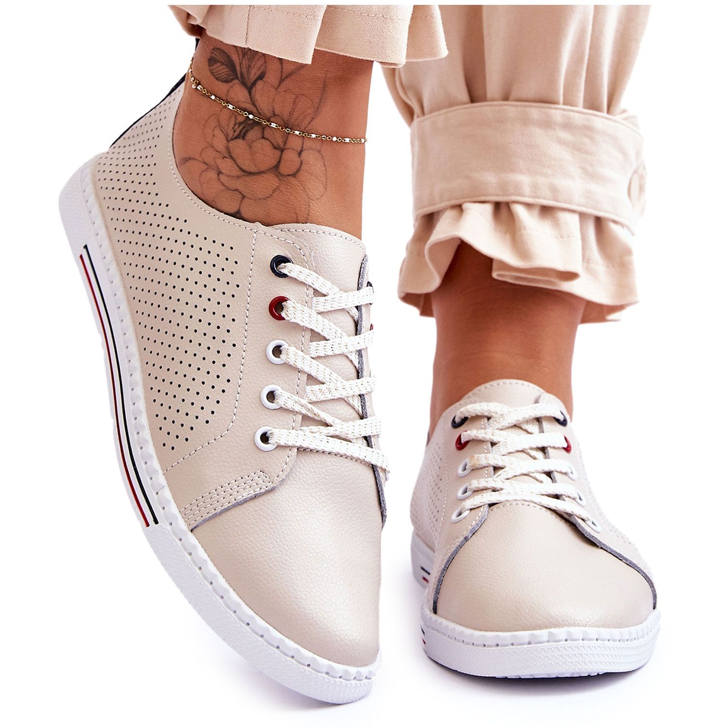 Podrobnosti: S.Barski Dámské prolamované kožené tenisky Béžová Ferone béžový