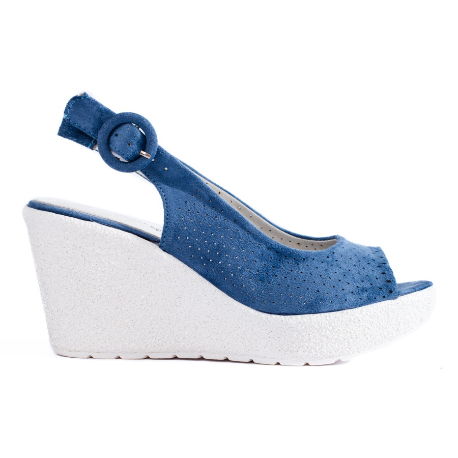 SHELOVET Dámské prolamované sandály na klínku Shelovet modrý