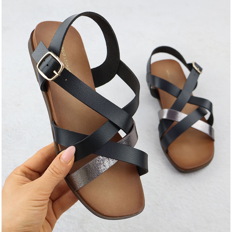 Dámské sandály Flat Romans Black Sergio Leone SK088H černý