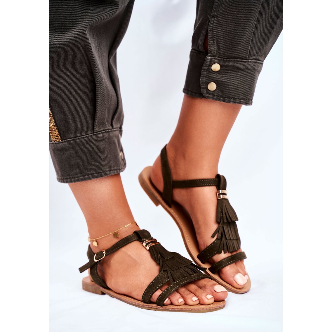 Objevte letní eleganci s dámskými sandály FJ1 v boho stylu! Tyto jedinečné olivové sandály jsou perfektní volbou pro každou letní příležitost. Jsou vyrobeny z kvalitního eko semiše, jsou nejen příjemné na dotek, ale také velmi pohodlné. Třásňové zdobení jim dodává jedinečný charakter a odlišuje je od ostatních modelů.