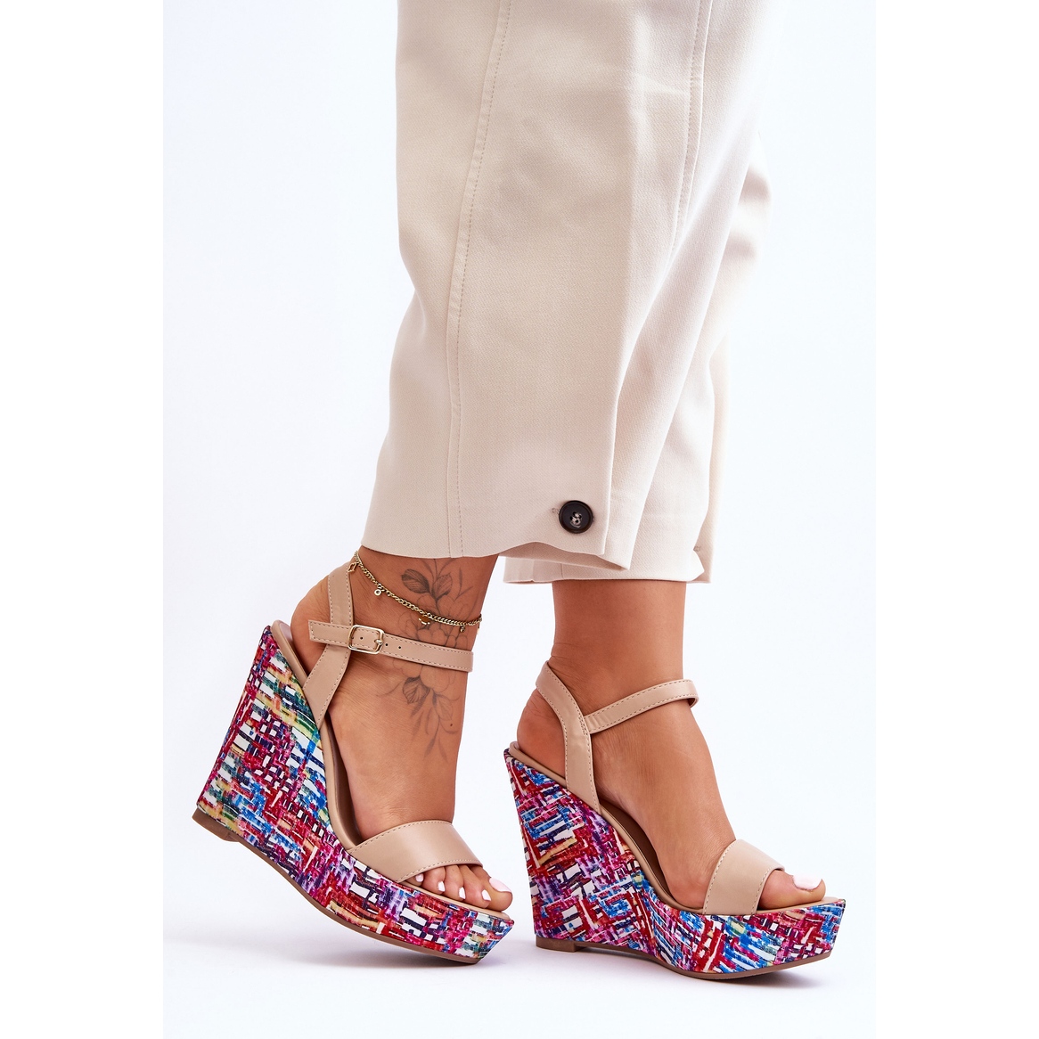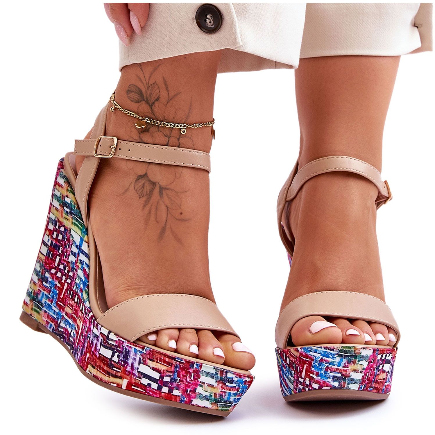 Inna marka Dámské Sandály Na Barevném Béžovém Klínu Malibu béžový