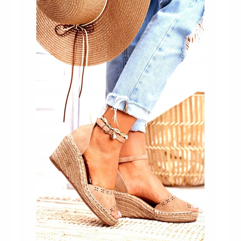 EVE EVE Dámské sandály na klínku Espadrilles Beige 9SD98- 0953 Sagittarius béžový