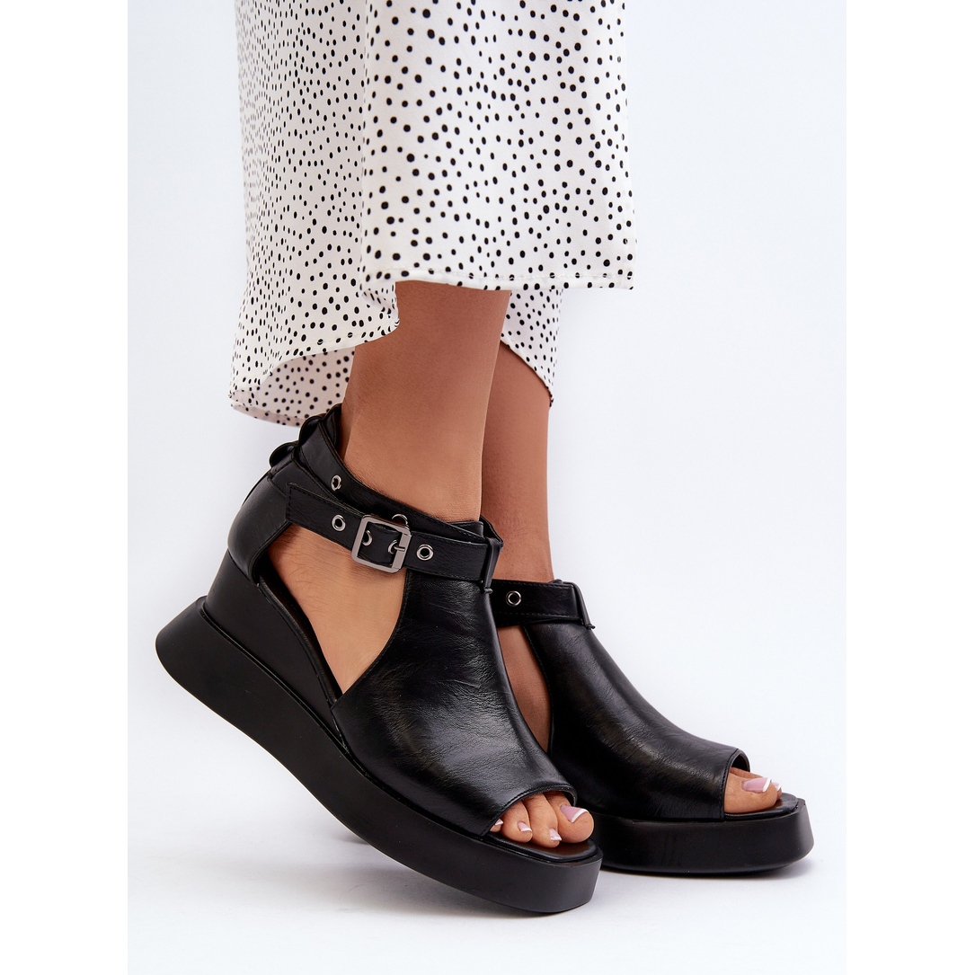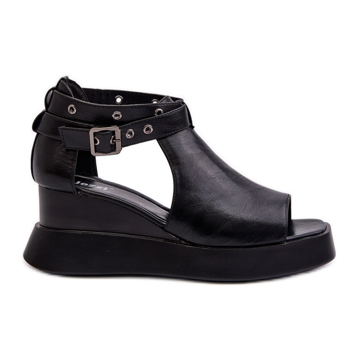 Jezzi Jezzi Dámské sandály na platformě a klínku z eko kůže, černá Hloeli