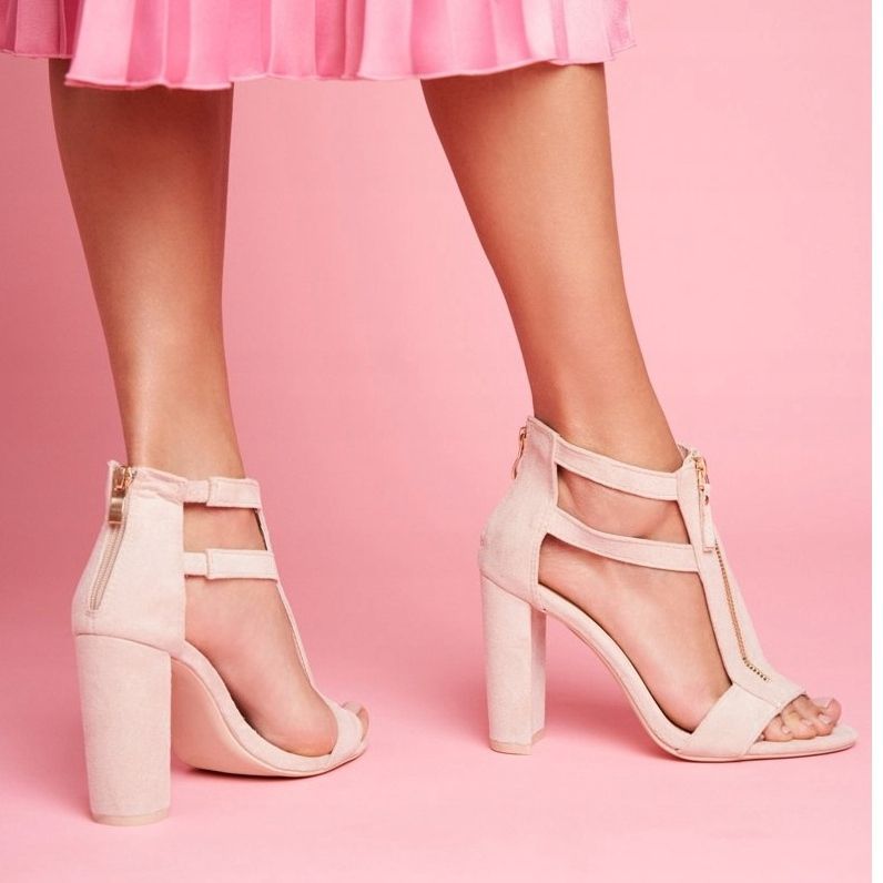 PS1 PS1 Dámské sandály na podpatku semišová béžová Folly béžový