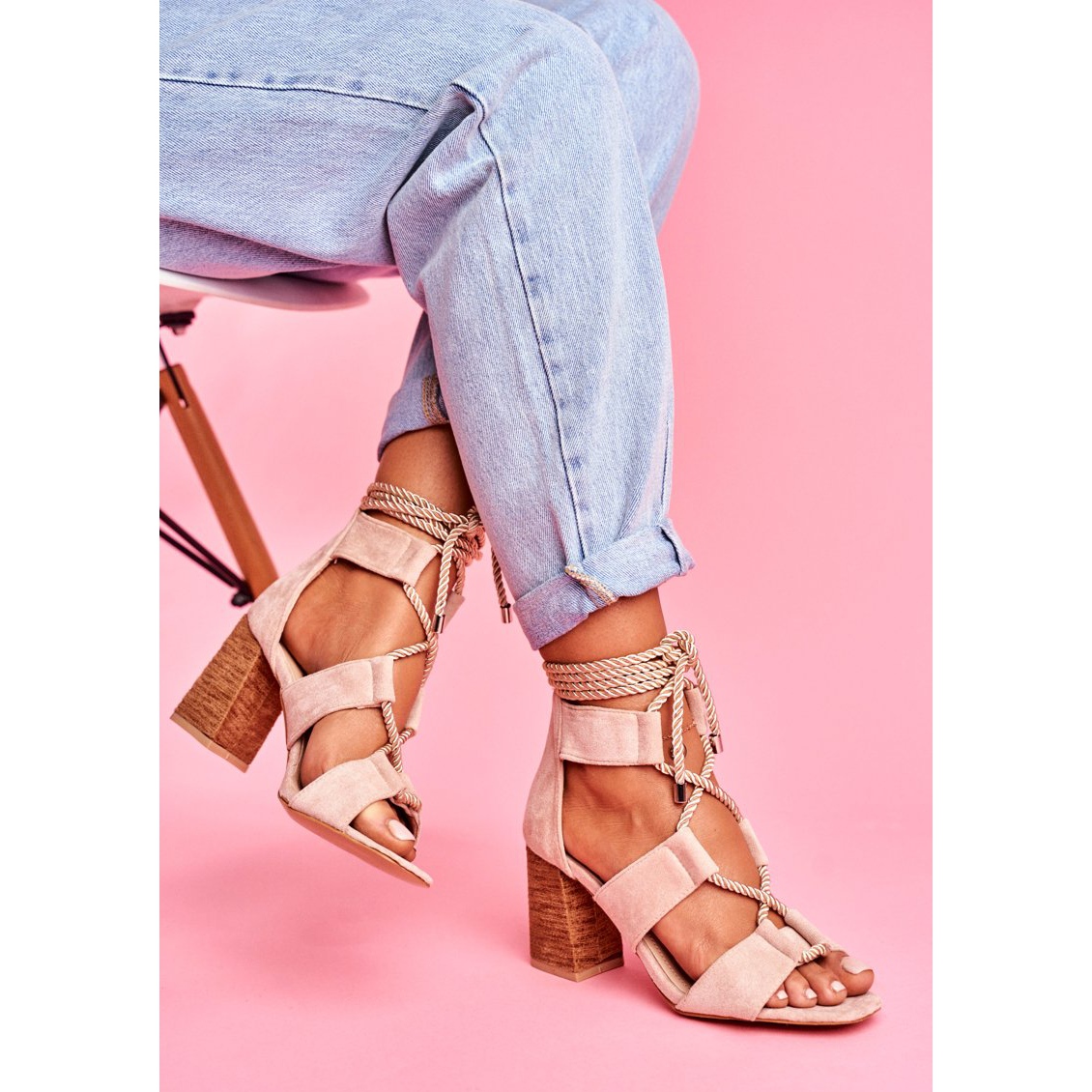 Podrobnosti: SEA Dámské sandály na podpatku Svázané semišové béžové Amore béžový