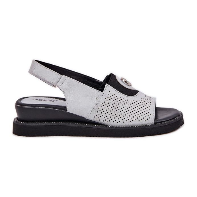 Jezzi Dámské sandály na stříbrném klínu s ozdobou stříbro