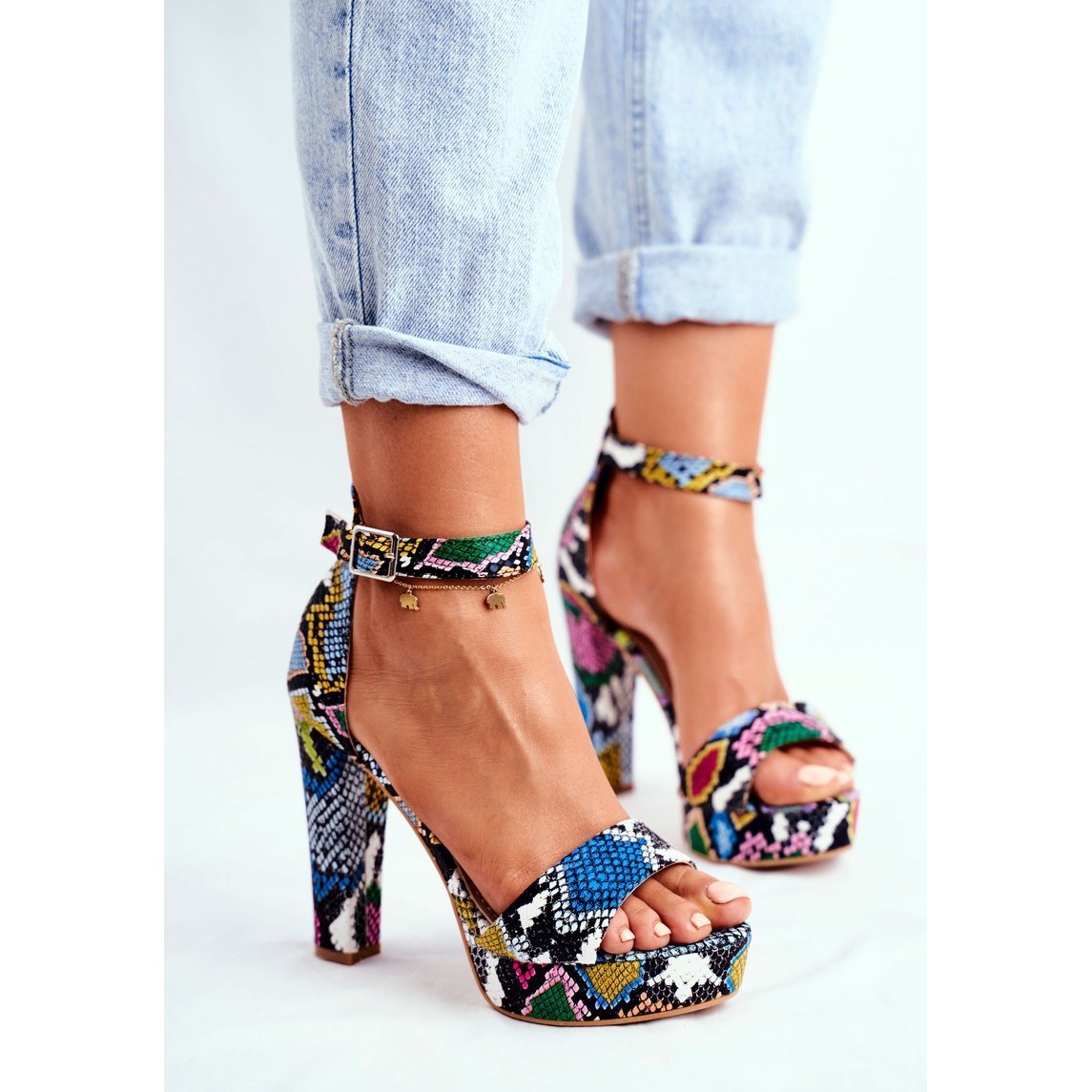 Podrobnosti: SEA Dámské sandály na vysokém podpatku Barevný had Figaro vícebarevný