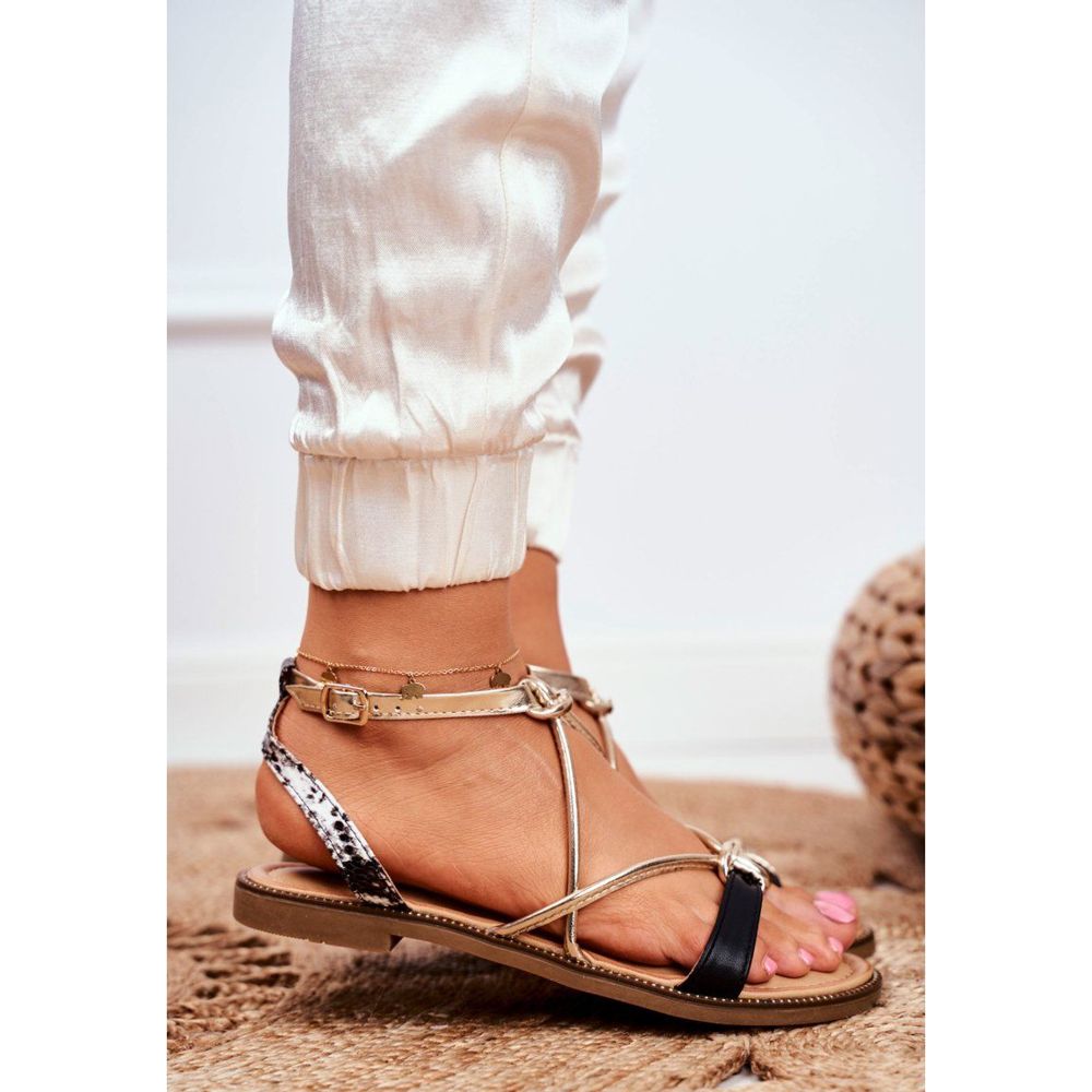 S.Barski S.Barski Dámské sandály ploché černé a zlaté Barski Samim černá žlutá