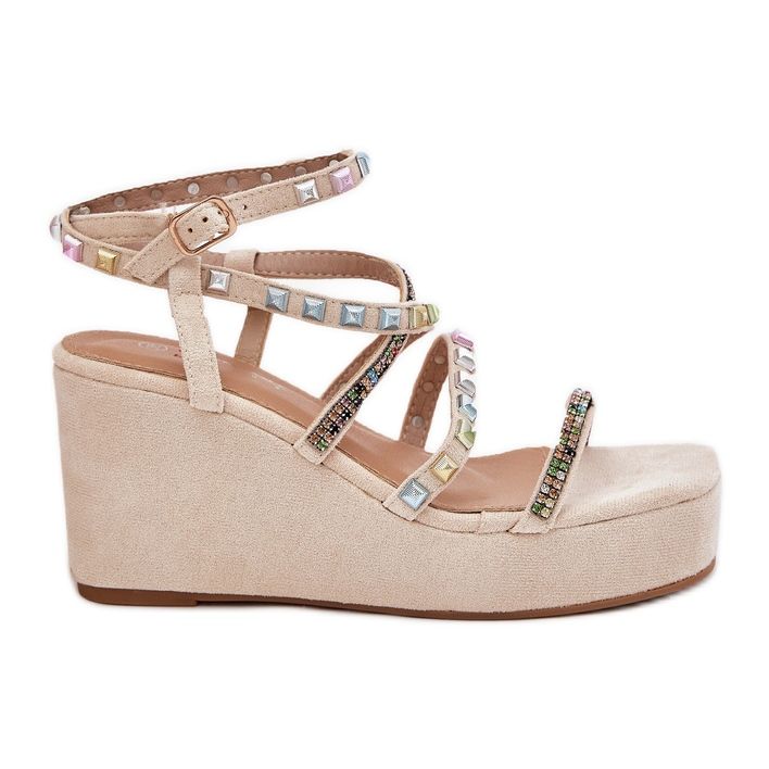 Inna marka Dámské sandály pro klín s dekorací na pruhy béžové béžový