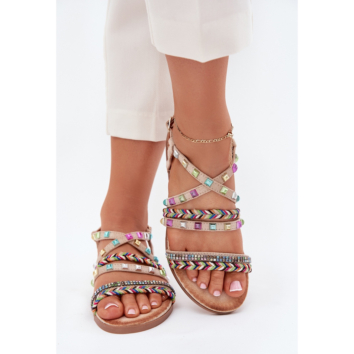 Inna marka Dámské sandály s dekorací a tkané pruhy béžové béžový
