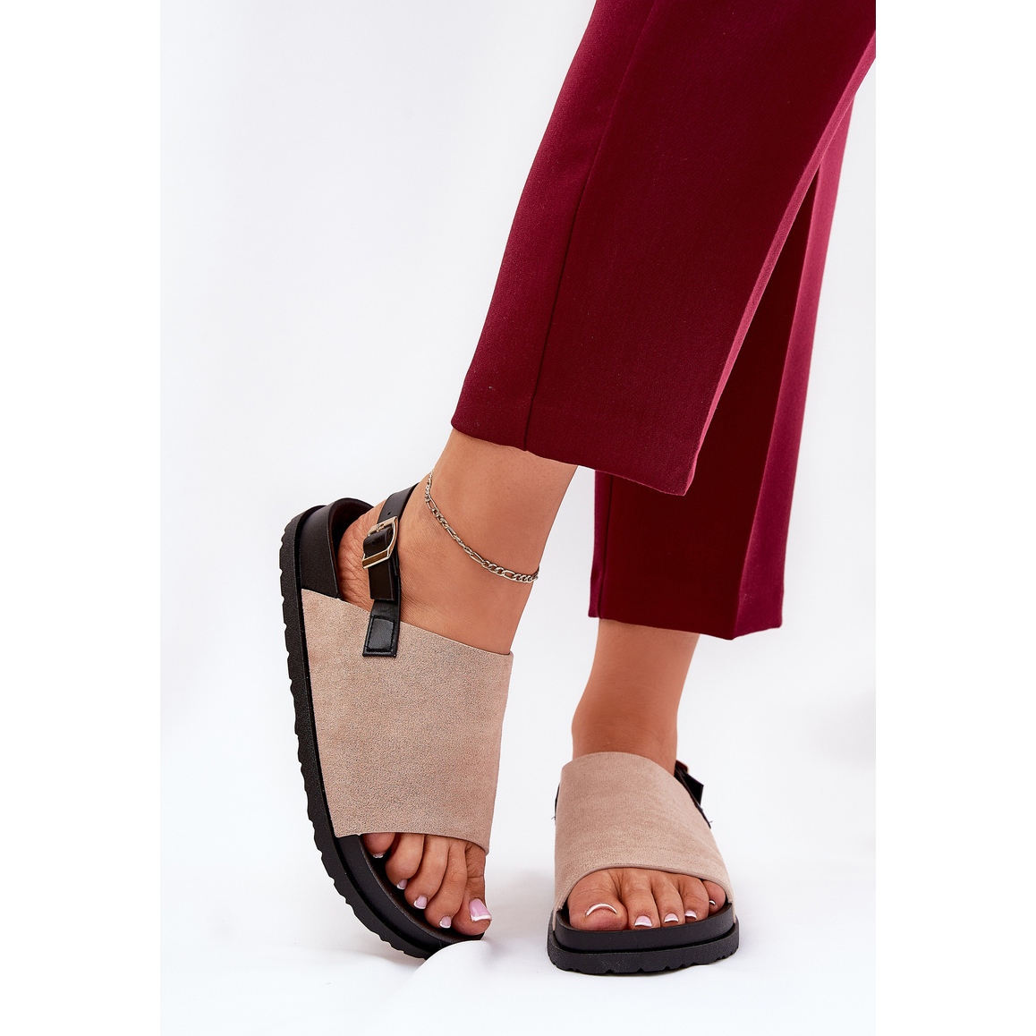 Objevte mimořádnou eleganci a pohodlí s našimi béžovými dámskými sandály s ekologickým semišem na platformě. Tyto stylové boty jsou perfektní kombinací módního designu s funkcemi, která bude fungovat v každé situaci. Sandály byly vyrobeny z vysoce kvalitních materiálů a byly zabudovány na jemnou plošinu s výškou 3 cm, což nejen zvyšuje číslo, ale také poskytuje pohodlí denně.