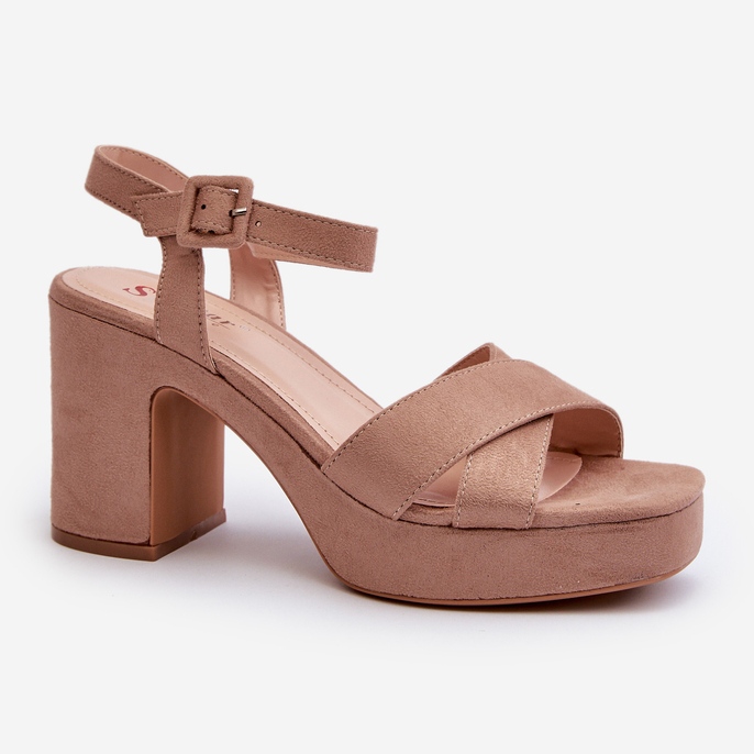 Inna marka Dámské sandály vyrobené z ekologického semiše na vysokém podpatku a platformě, tmavě béžová Sakane béžový
