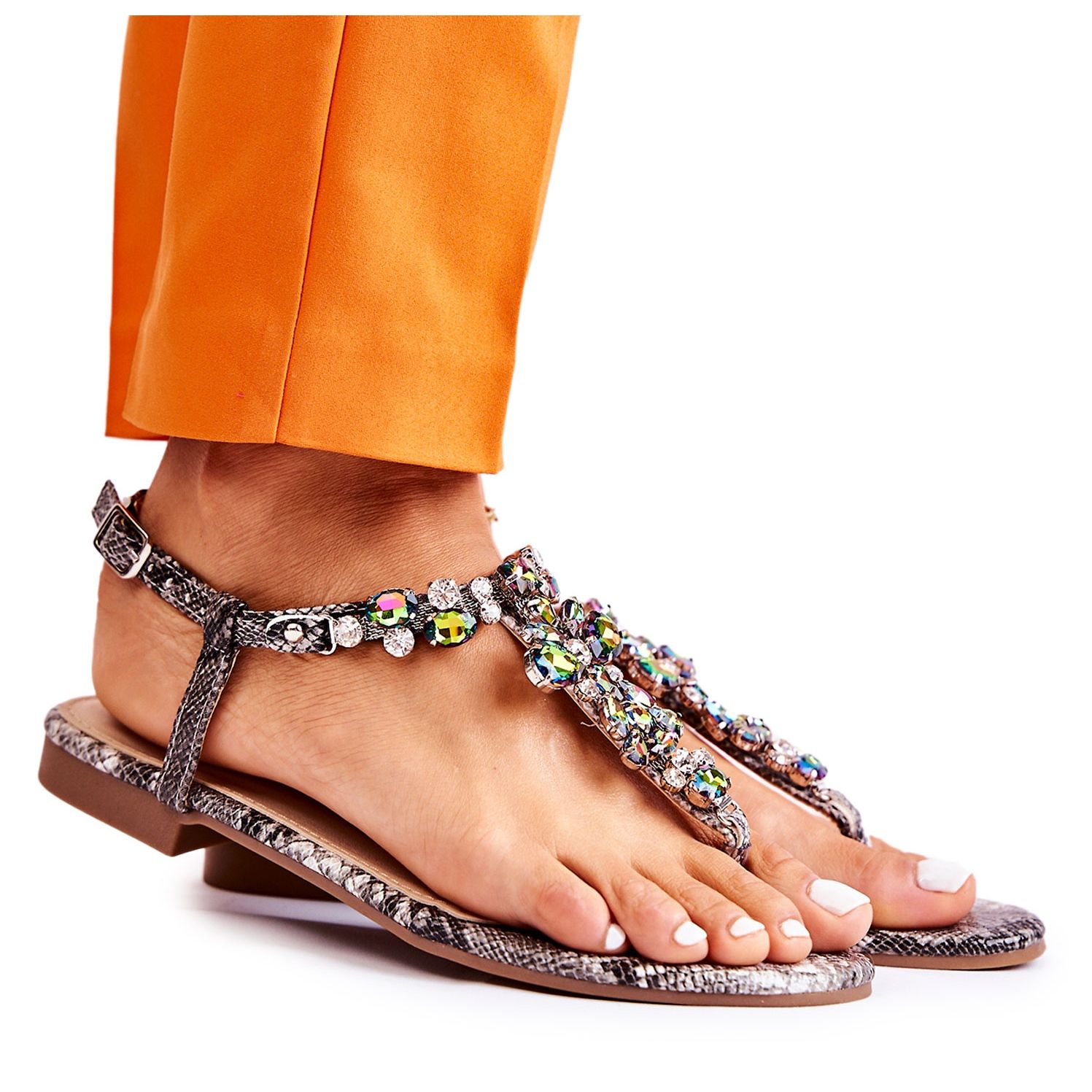 PG2 PG2 Dámské sandály žabky s kubickými zirkony šedé Ivanne šedá