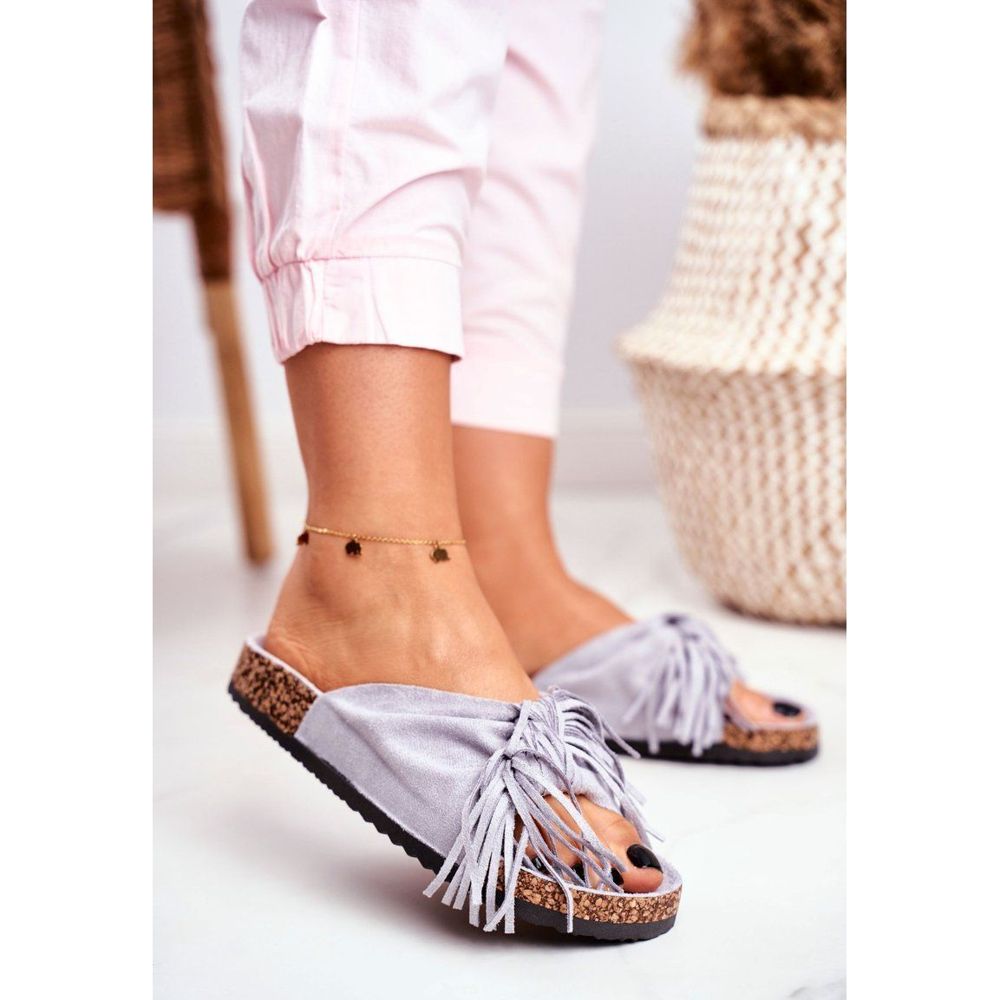 BUGO BUGO Dámské šedé pantofle na Cork Fringe Marina šedá