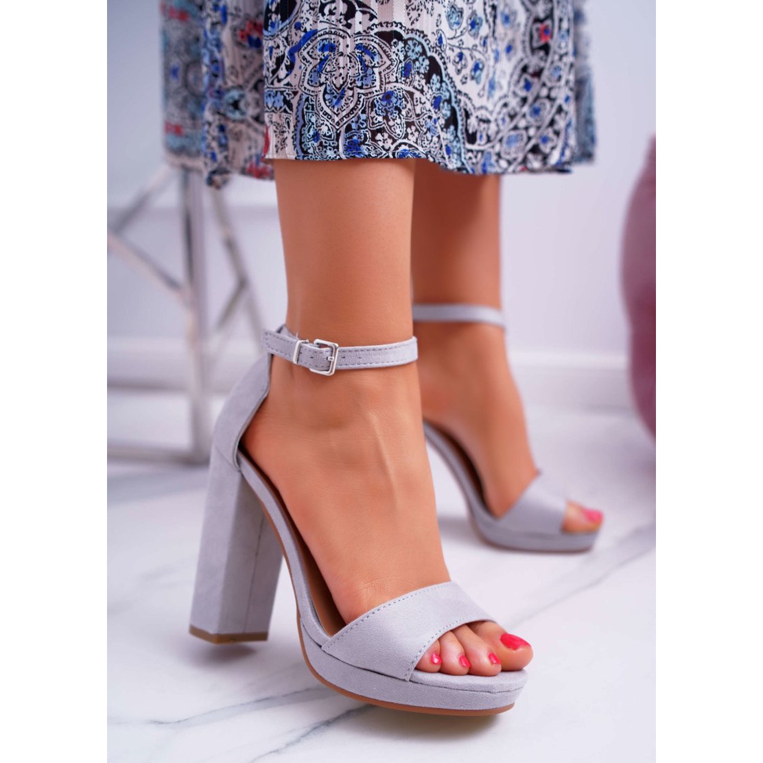 Výška podpatku je 12 cm, díky čemuž vypadají nohy štíhlejší a silueta bude působit vznešeně. Zapomínat bychom neměli ani na funkčnost – sandály mají praktické zapínání na přezku, která usnadňuje jejich nazouvání a úpravu.
