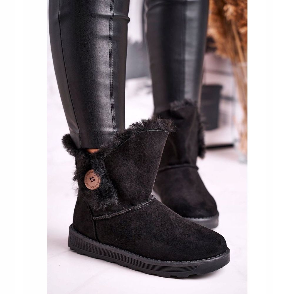 Neotálejte! Pořiďte si pohodlné a stylové Dámské černé knoflíkové semišové boty s kožíškem, které budou dokonalým doplňkem vašeho zimního šatníku!