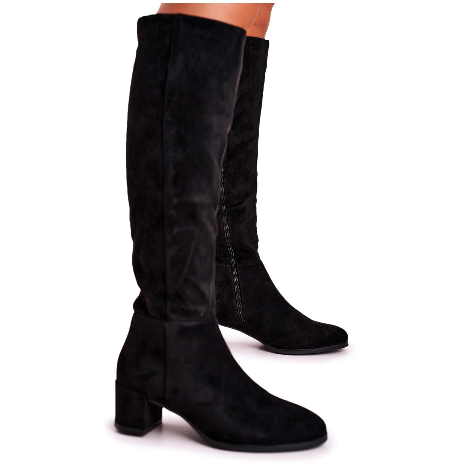 Objevte eleganci a pohodlí s dámskými semišovými botami Sergio Leone v černé barvě (KZ273). Tyto nadčasové kozačky na silném podpatku jsou perfektním doplňkem vašeho podzimně-zimního šatníku a kombinují módní design s praktickými řešeními. Vyrobeny z ekologického semiše, poskytují nejen atraktivní vzhled, ale díky jemné kožíškové izolaci také komfort nošení.