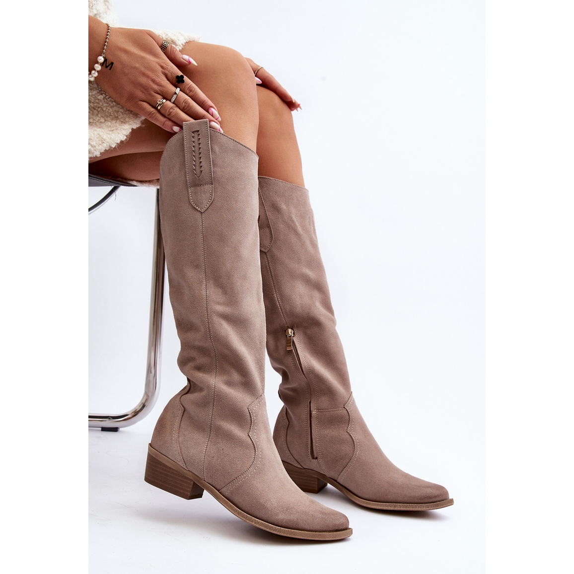 - Modelka: Dámské semišové kovbojské boty Cappuccino