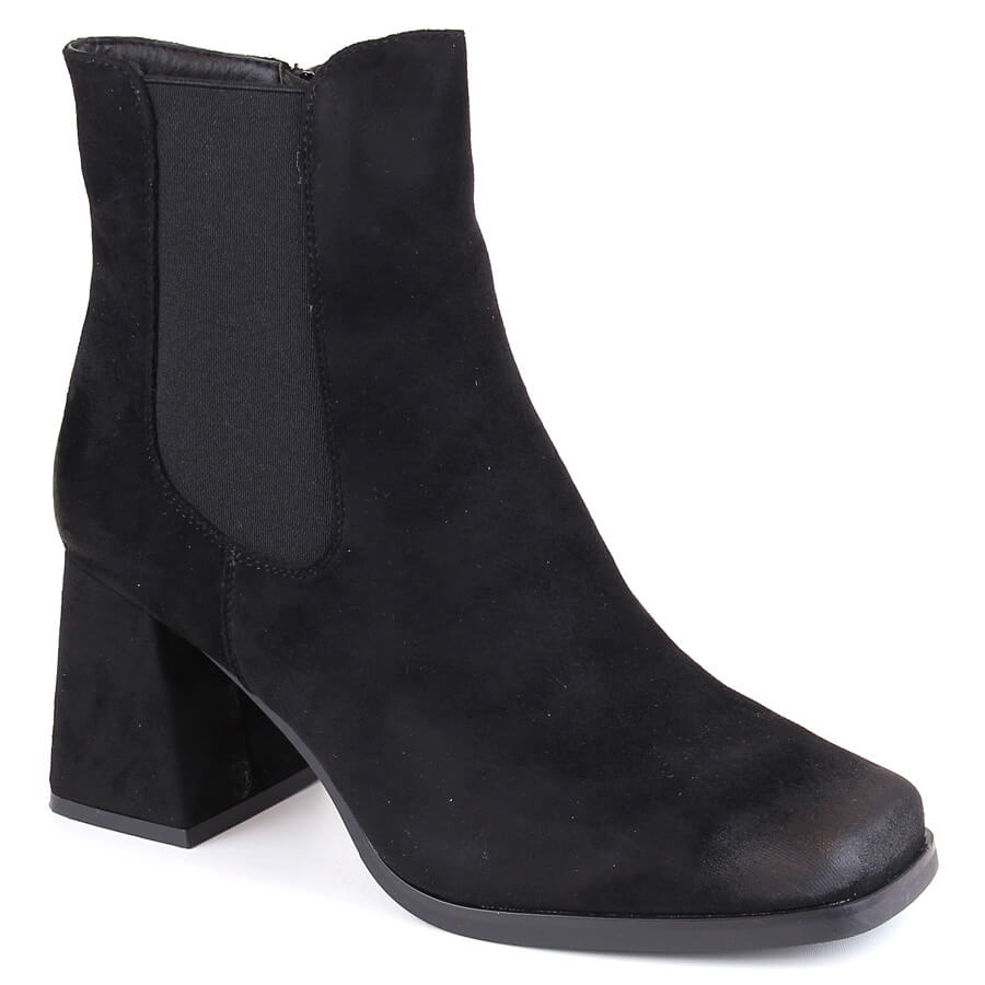 Suede Boots Potocki SZ12183 je návrh pro ženy, které si cení stylu a pohodlí. Vyrobeno z ekologické semišové kůže v klasické černé barvě (spolu se podešve), kombinují módní čtvercový prst s 7,5 cm po -koléb - ideální pro každodenní a formálnější stylizace.