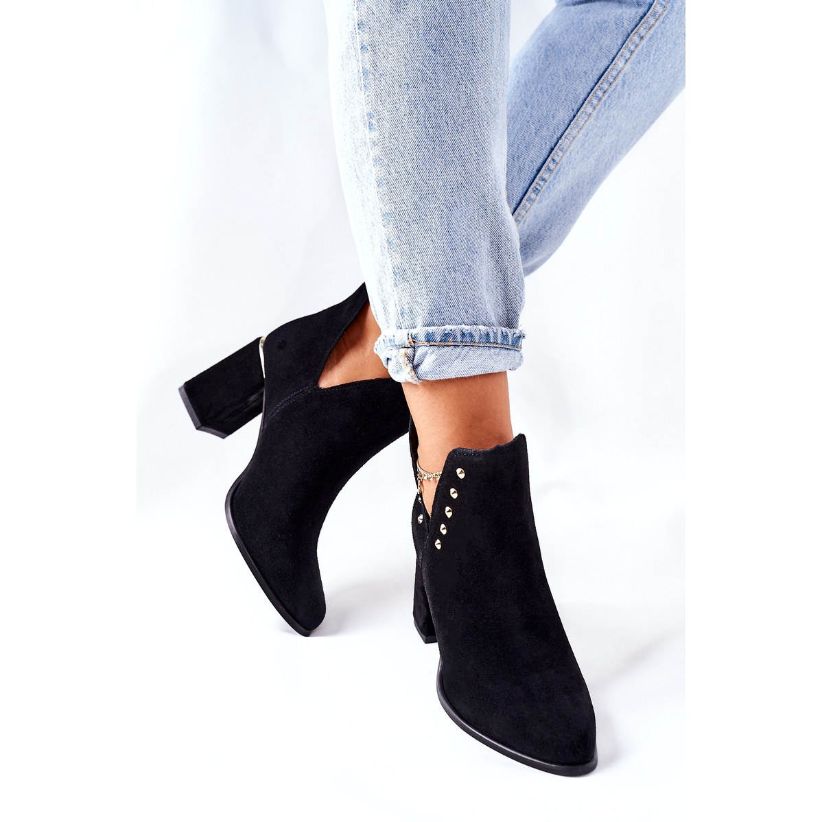 Dámské semišové boty s výřezy a drahokamy Lewski 3075 - černá