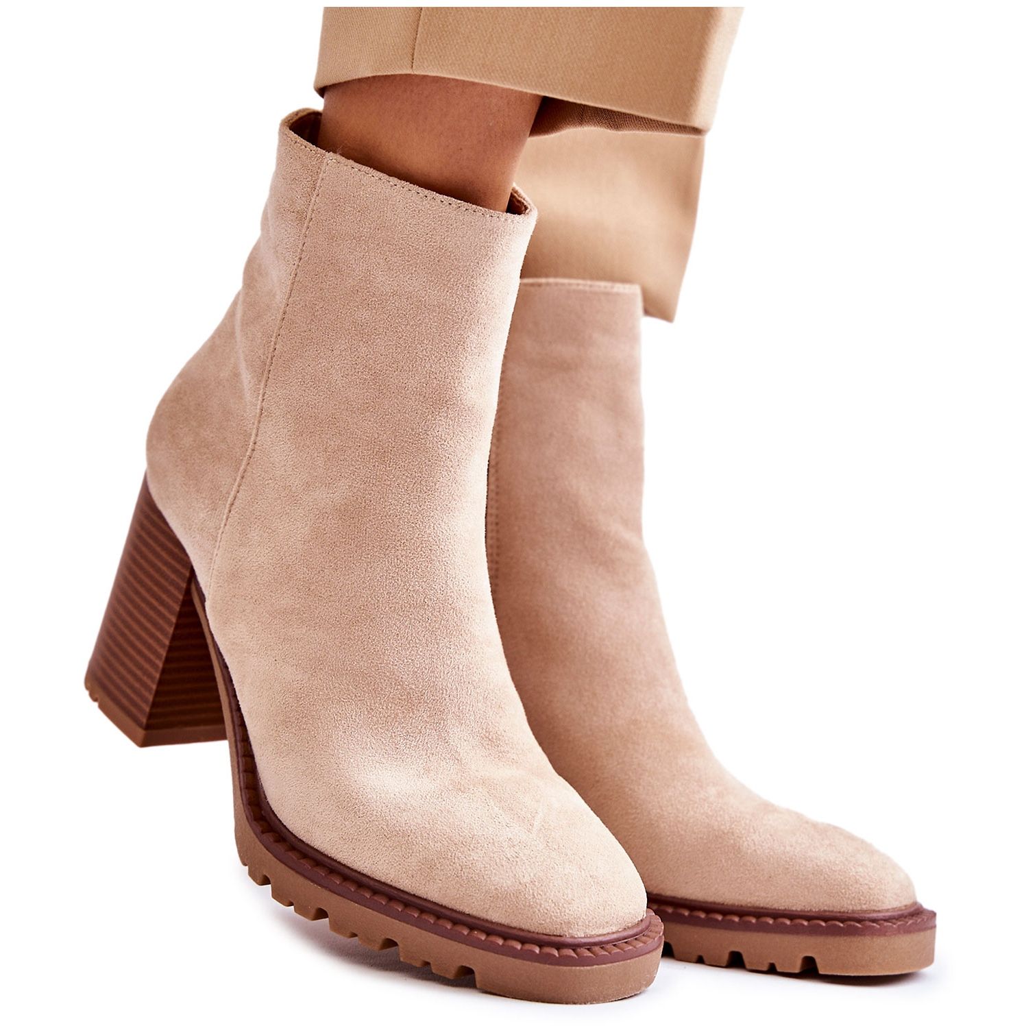 Podrobnosti: FB1 Dámské semišové kozačky na podpatku se zipem béžová Odette béžový