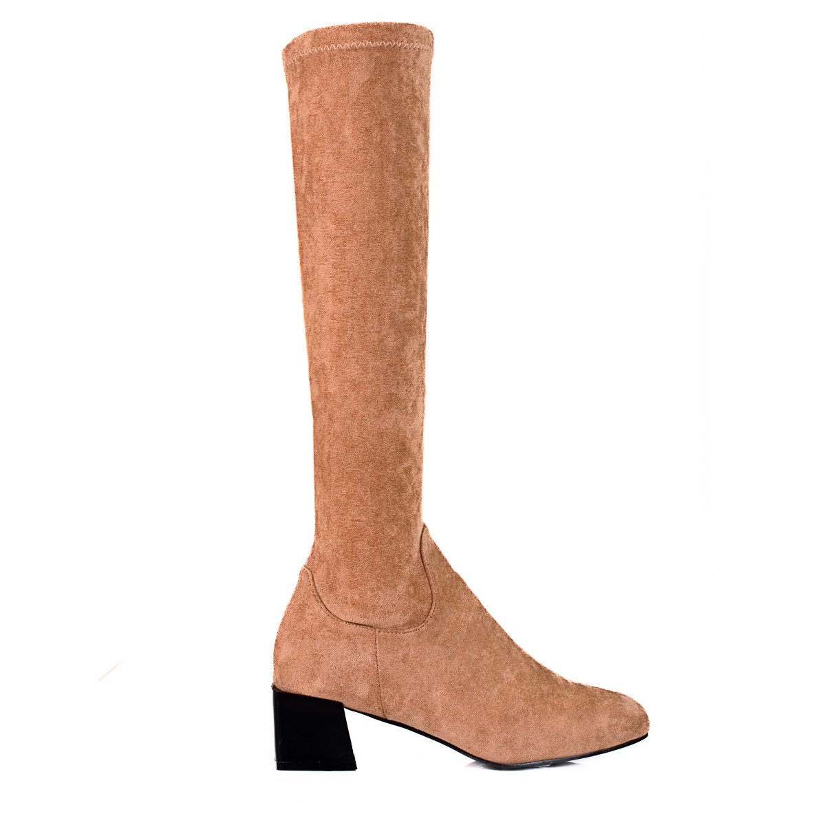 T.Sokolski T.Sokolski Dámské semišové kozačky na širokém sloupku od Sokolski, béžové béžový