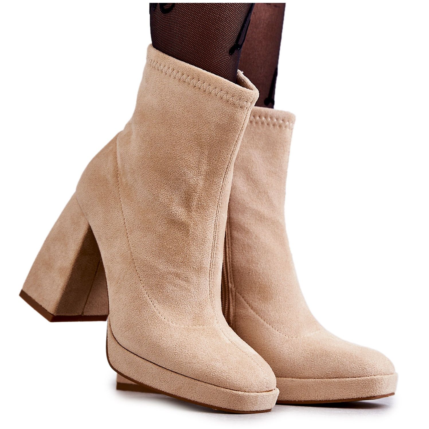 Inna marka Dámské semišové kozačky na vysokém podpatku Světle béžová Ramira béžový