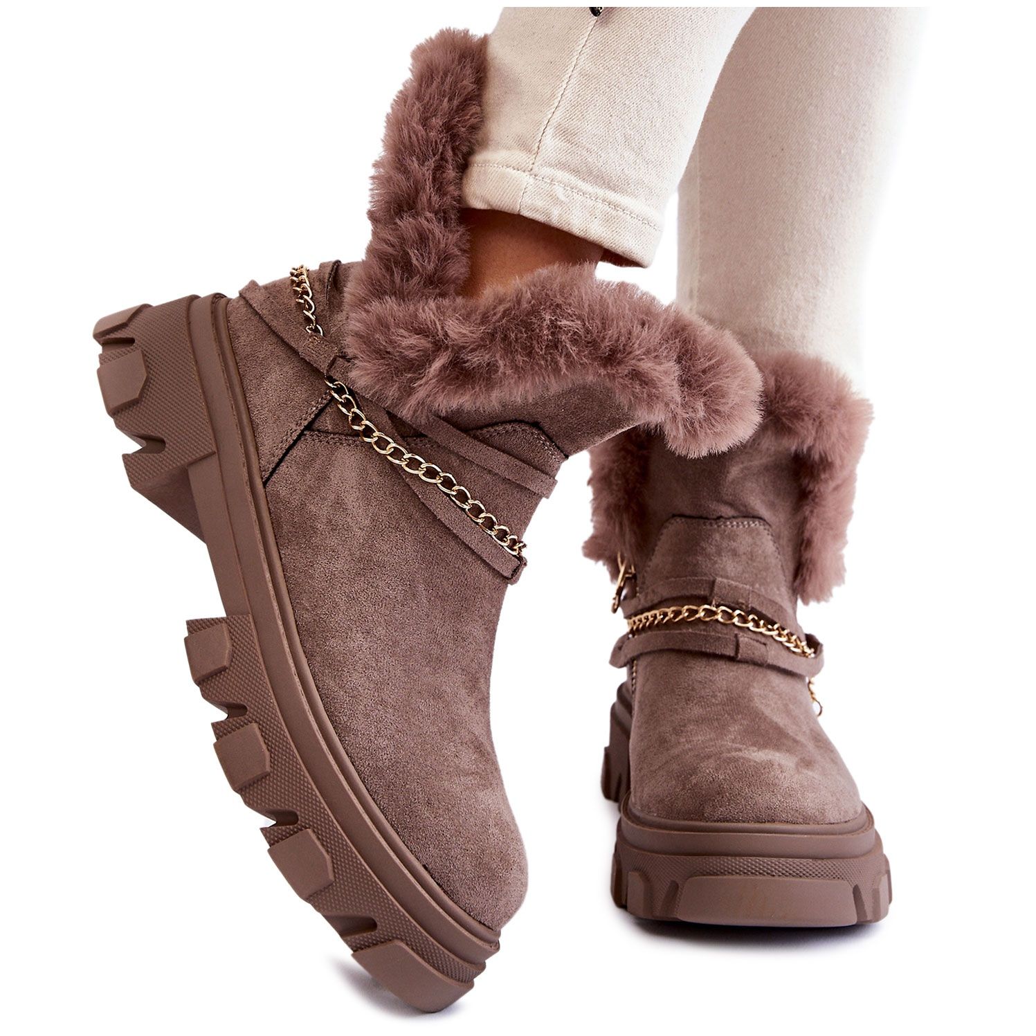 PM1 PM1 Dámské semišové kozačky s ozdobným řetízkem světle hnědé Respecto hnědý
