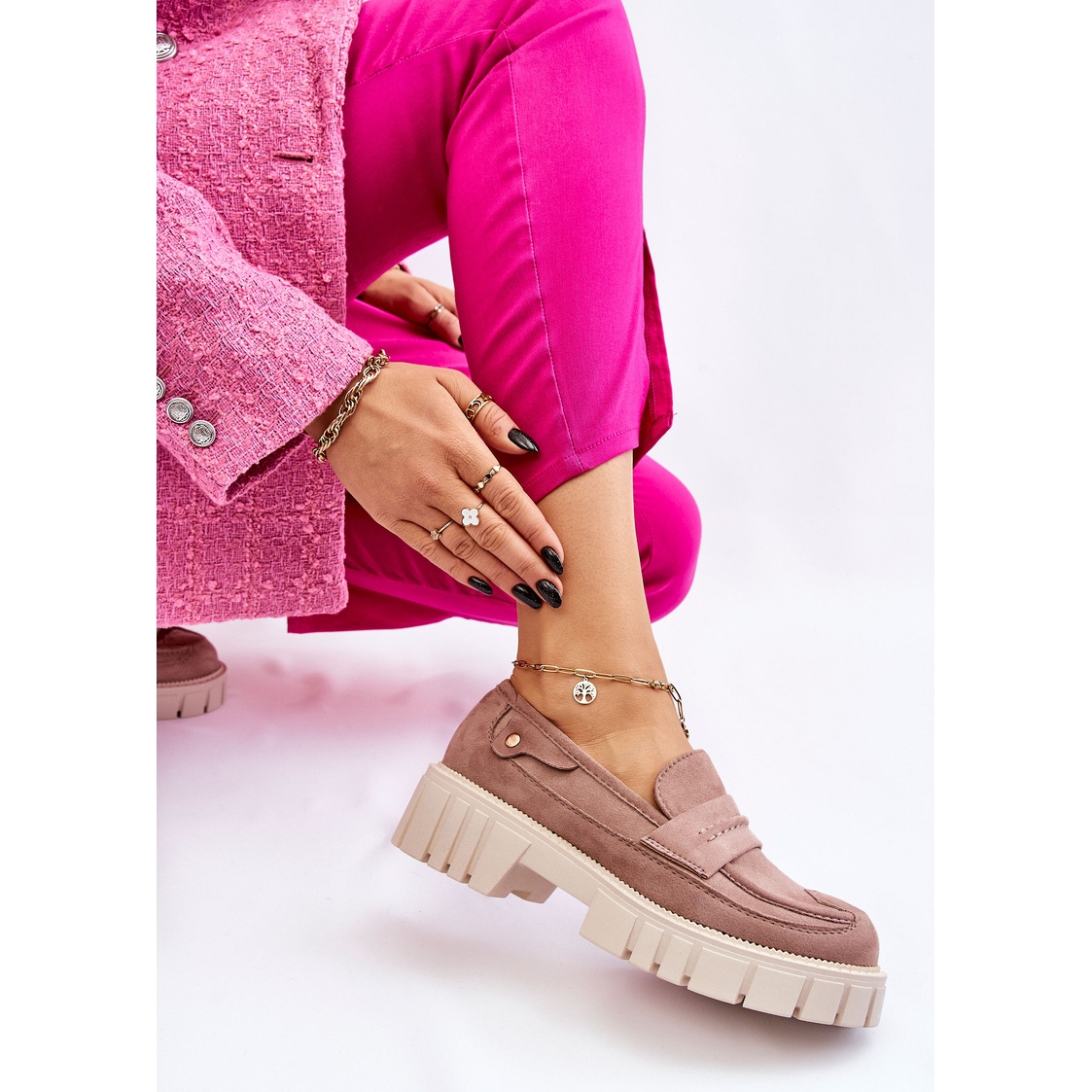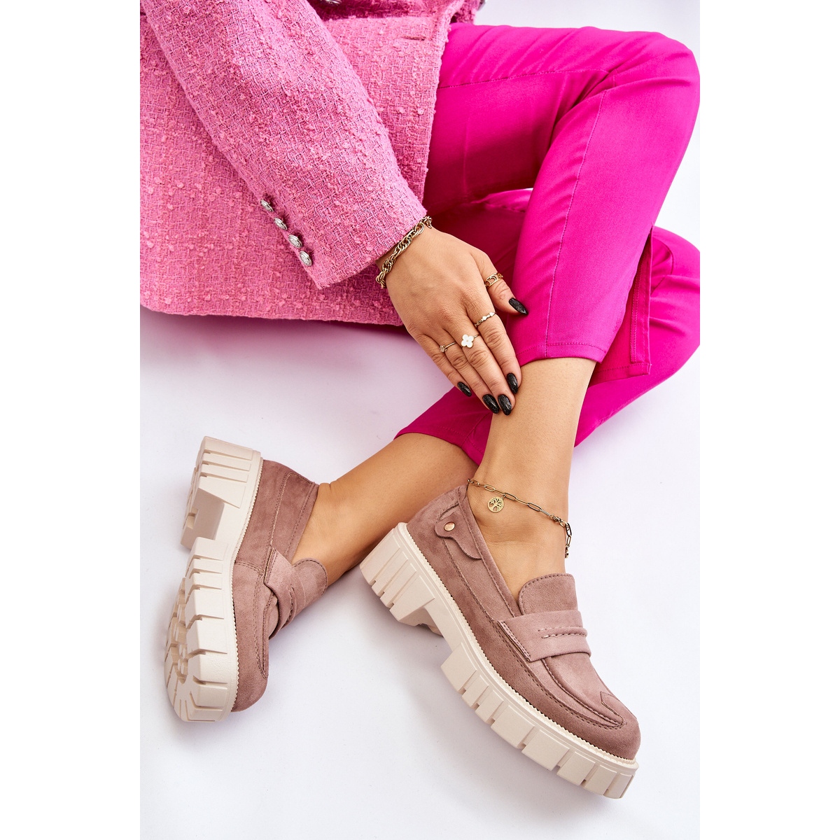 Stylová barva Fiorell Loafer In Light Brown (DK.Beyge) je kombinací klasické formy s moderním masivním povrchem. Vyrobeno z vysoce kvalitní ekologické semišové kůže s jemnými lemy, upozorňují na přední stranu dekorativního popruhu a kovovým nýtem na straně horního. Univerzální kulatý nos a hladká, jednotná textura způsobují, že boty odpovídají každodenním i elegantnějším stylizacím.