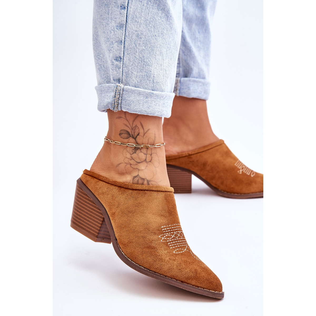 BM BM Dámské semišové pantofle Camel Romina Cowboy hnědý