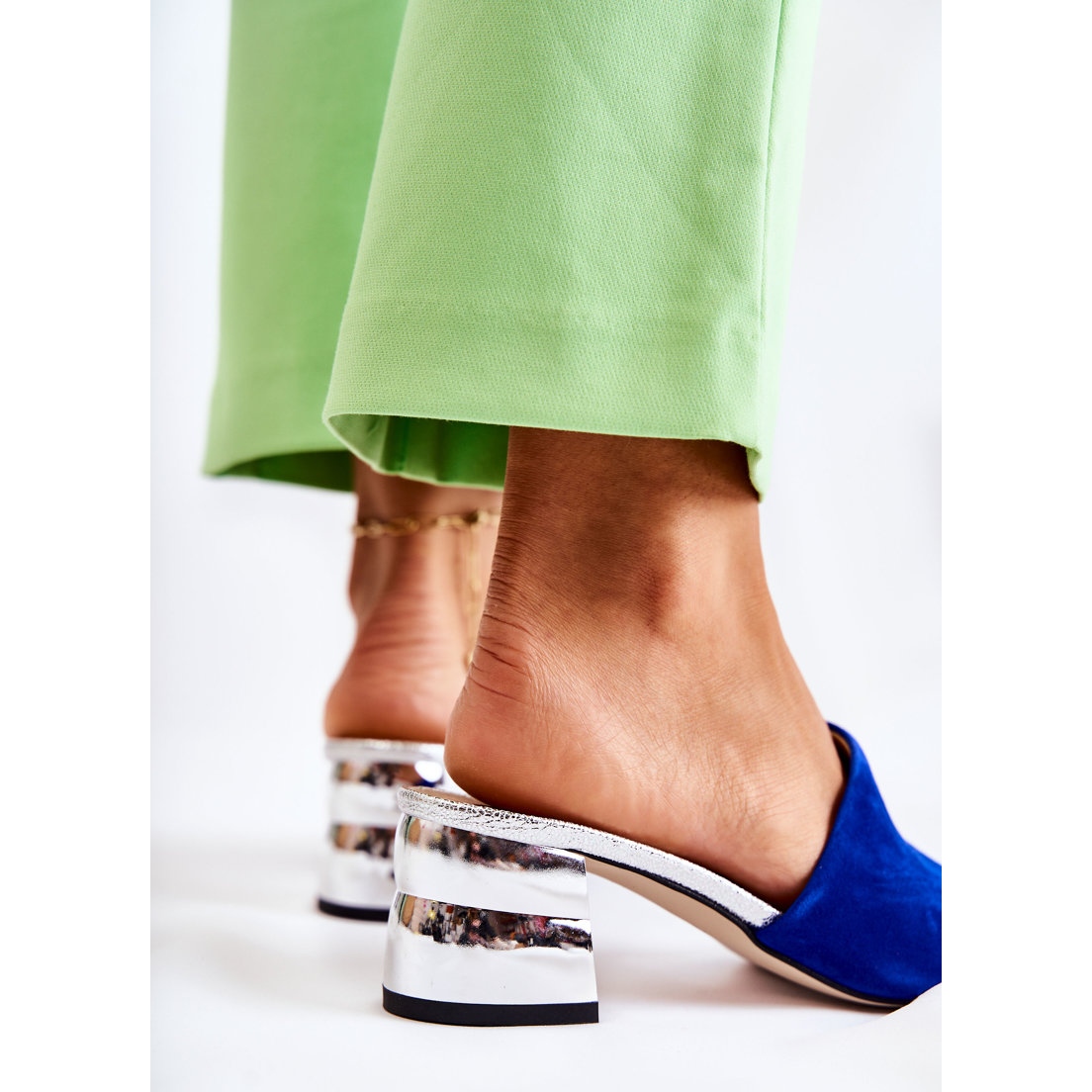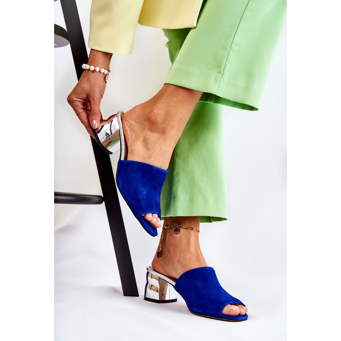 PA2 PA2 Dámské semišové pantofle na podpatku tmavě modrá Perry námořnická modrá modrý stříbrný