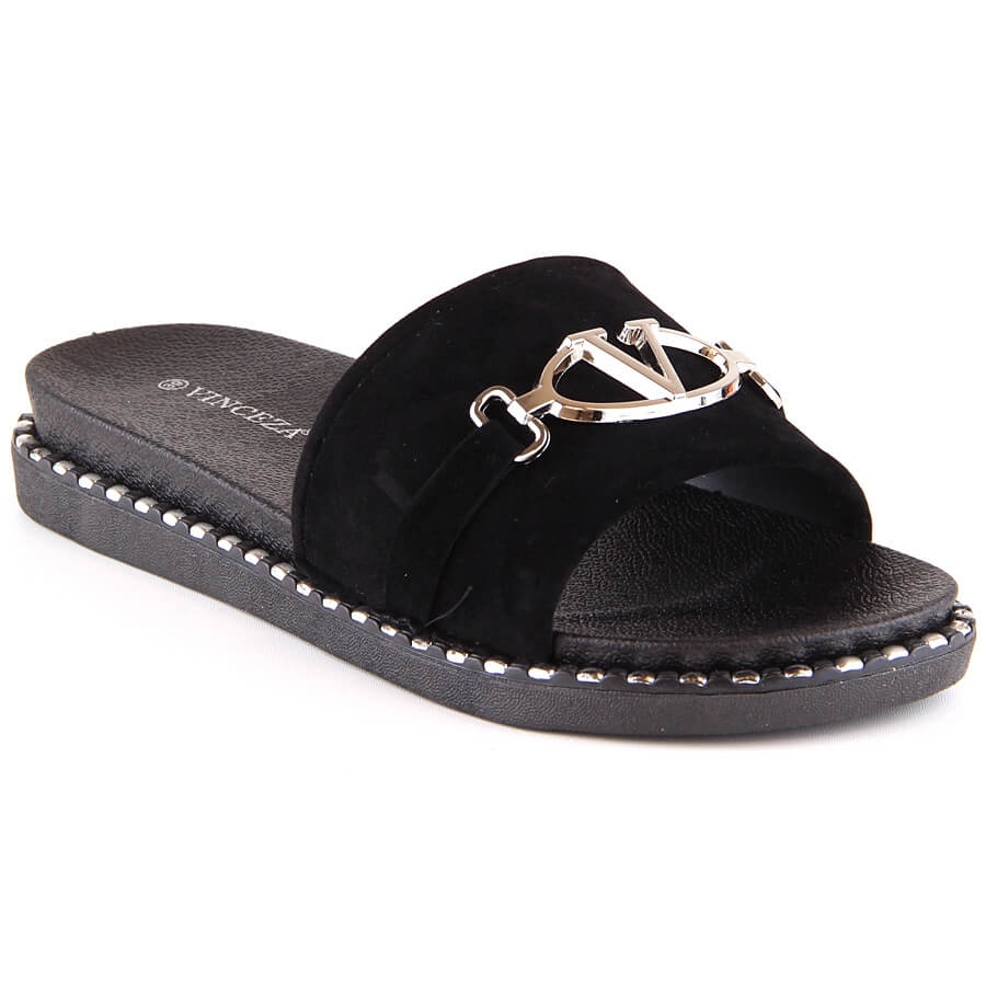 Vinceza Dámské semišové pantofle s černým zdobením Vinceza 30183 černá