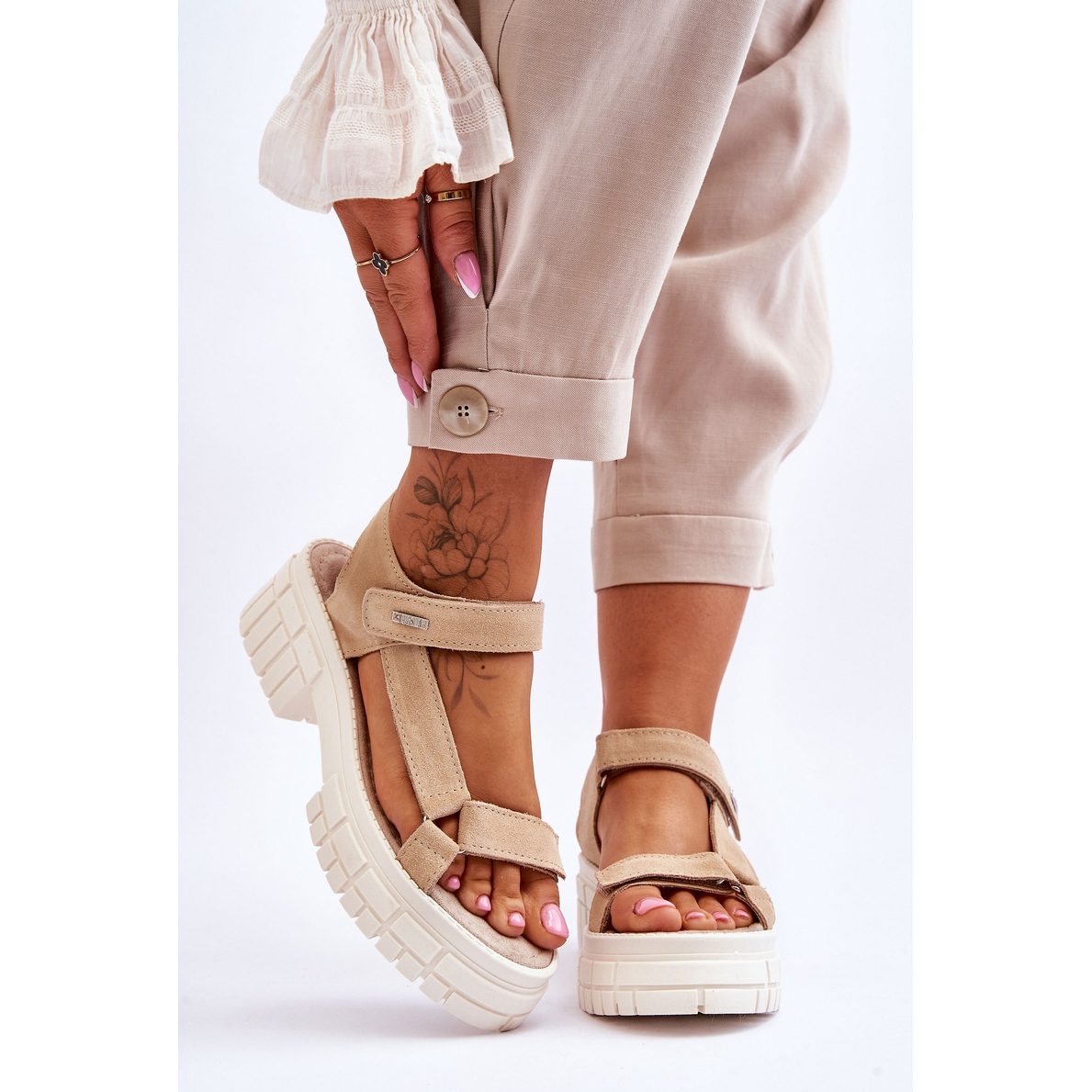 Tyto sandály vyrobené z přírodního semiše se vyznačují měkkou stélkou z ekologického semiše, která zajišťuje pohodlí i při dlouhých procházkách. Model umístěný na 3,5 cm vysoké platformě a plochém podpatku (5,5 cm) je dělá nejen stylovými, ale i stabilními. Zapínání na suchý zip usnadňuje nazouvání a přizpůsobení noze, což z nich dělá praktické řešení pro každou příležitost.