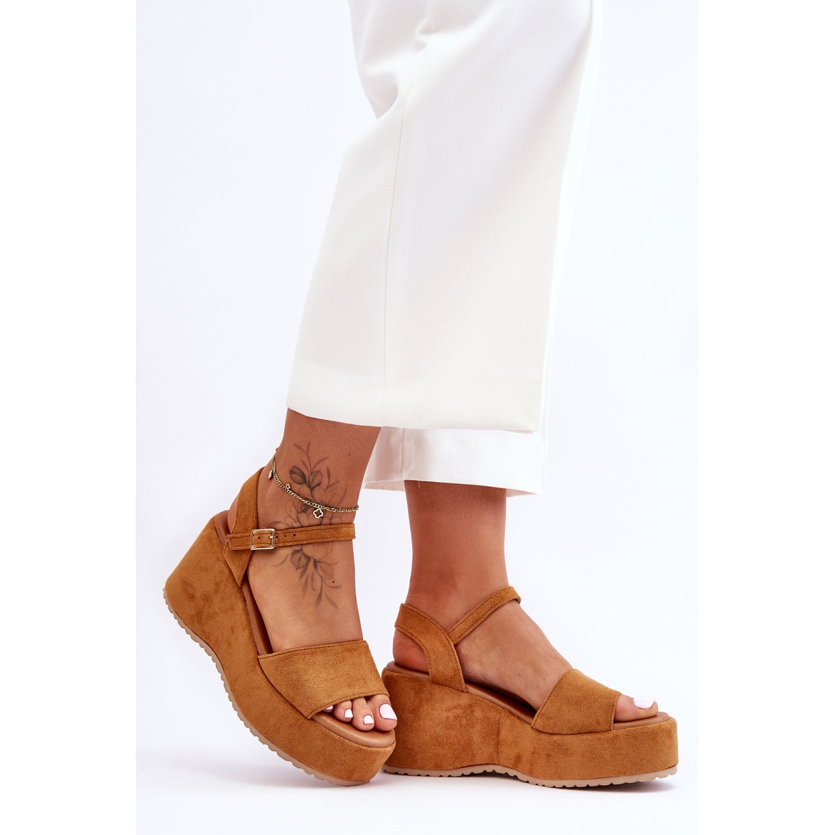 Inna marka Dámské semišové sandály Camel Lydia na klínu hnědý