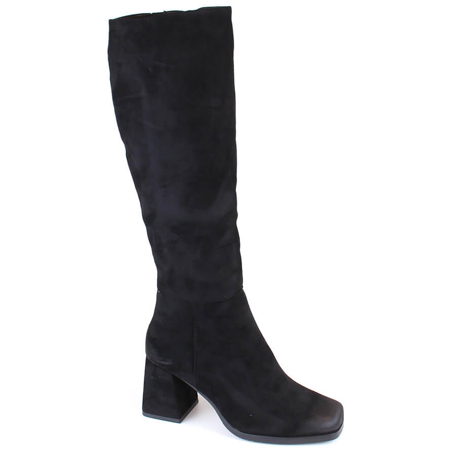 Potocki Dámské semišové, zateplené kozačky na vysokém podpatku, černé Potocki SZ12254 černá