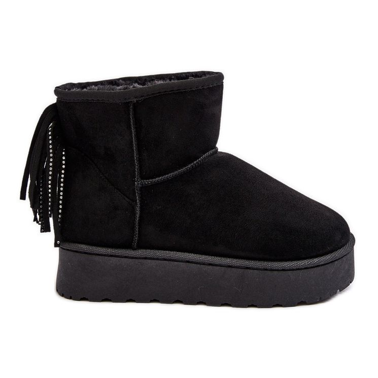 Dámské sněhule na masivní platformě s třásněmi, černá Lirico černý