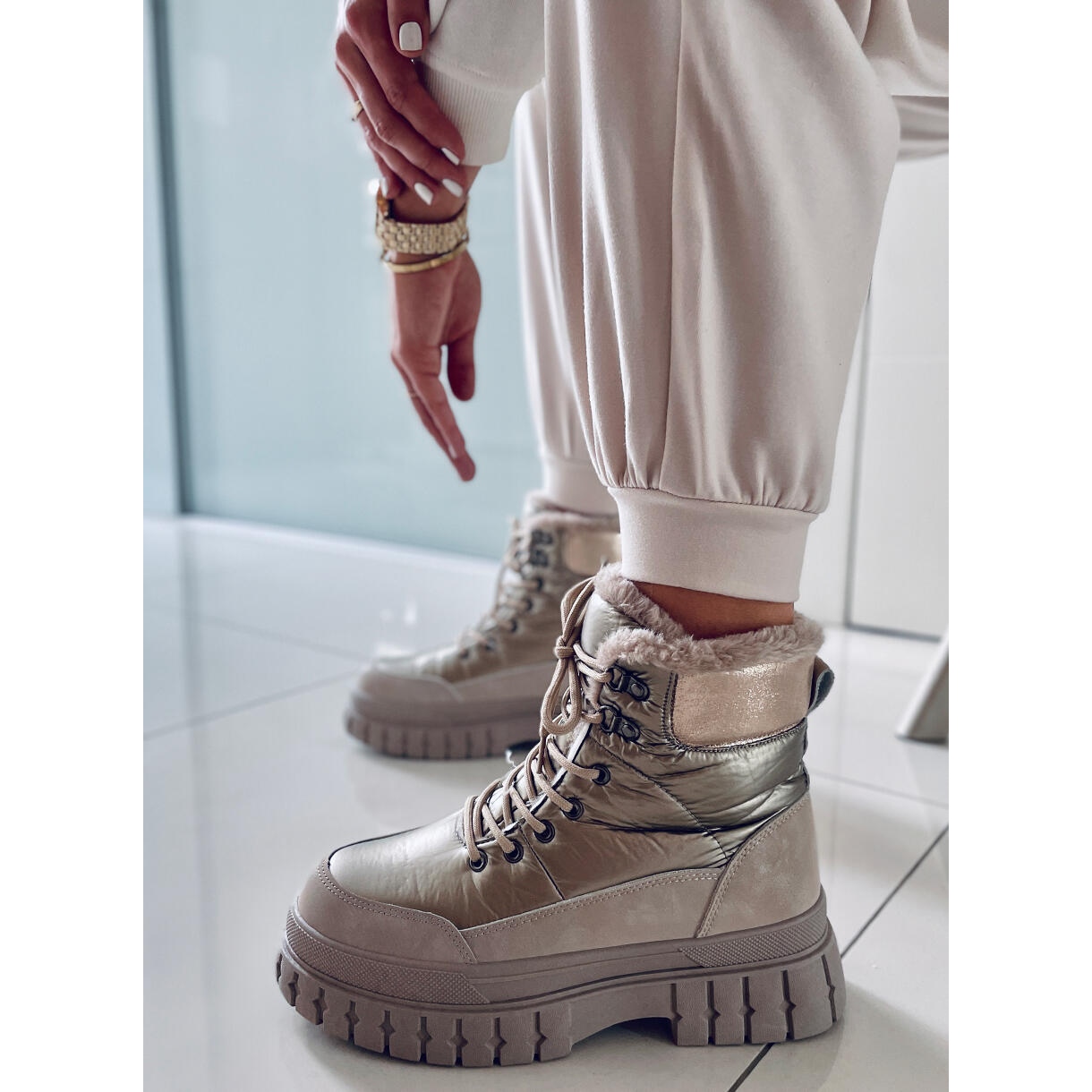 Komfort zapínání je další výhodou - šněrování umožňuje dokonalé přizpůsobení obuvi individuálním potřebám a kulatá špička poskytuje prostor pro nohy. Plochý podpatek je zase zárukou stability a pohodlí při dlouhých zimních procházkách.