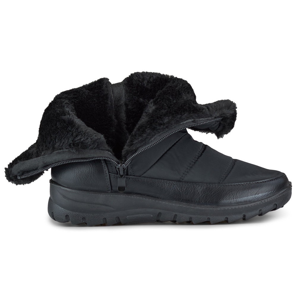 Zip usnadňuje nazouvání a standardní šířka umožňuje přizpůsobení každé noze. Černé sněhule s nylonovým svrchním materiálem a látkovou podšívkou vypadají elegantně a díky svému univerzálnímu designu se hodí k mnoha zimním outfitům.