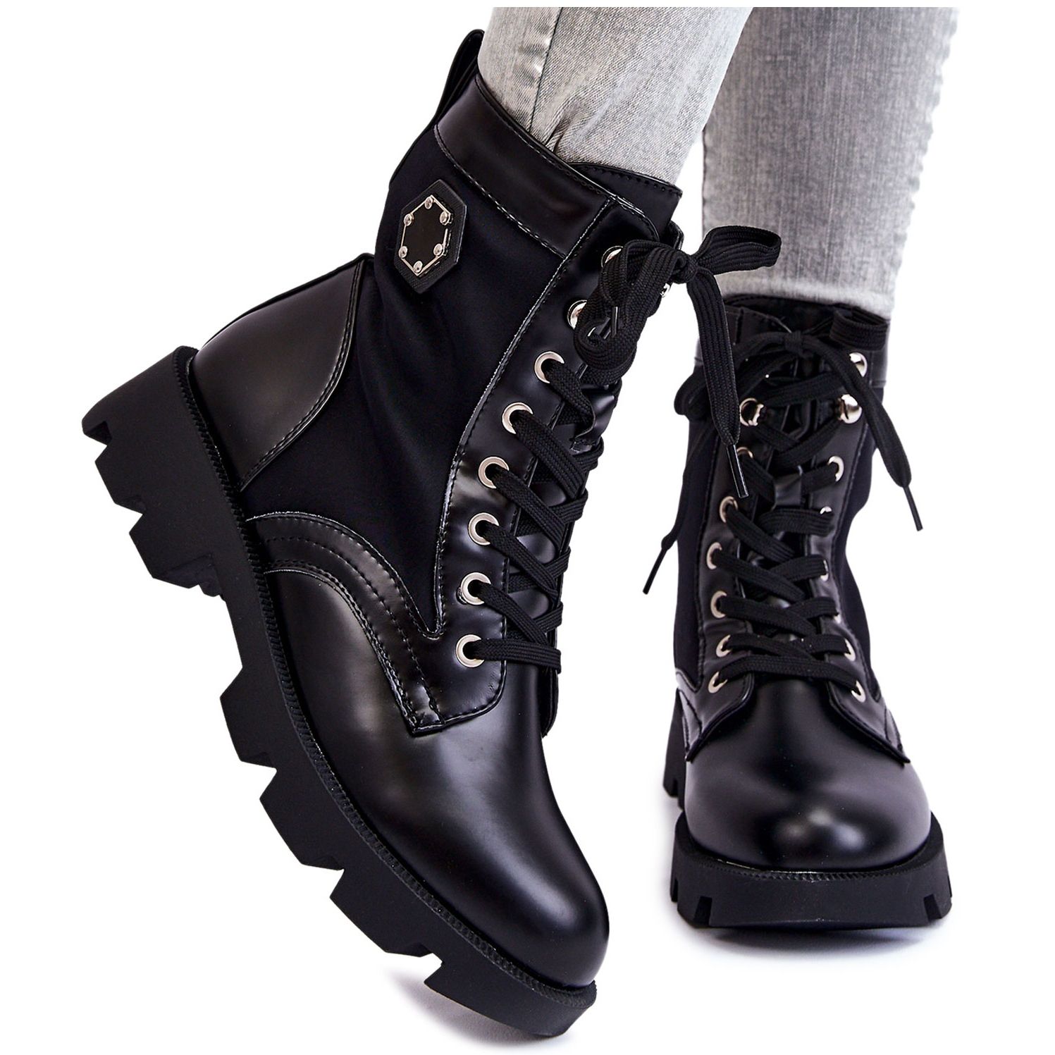 Zde je dokonalá kombinace stylu a pohodlí - dámské šněrovací kotníkové boty PG1 v elegantní černé barvě. Tyto módní boty jsou perfektní volbou pro ženy, které oceňují funkčnost i estetiku. Kozačky jsou pečlivě vyrobeny z kombinace ekokůže a textilního materiálu, což zaručuje jejich odolnost a pohodlí při nošení.