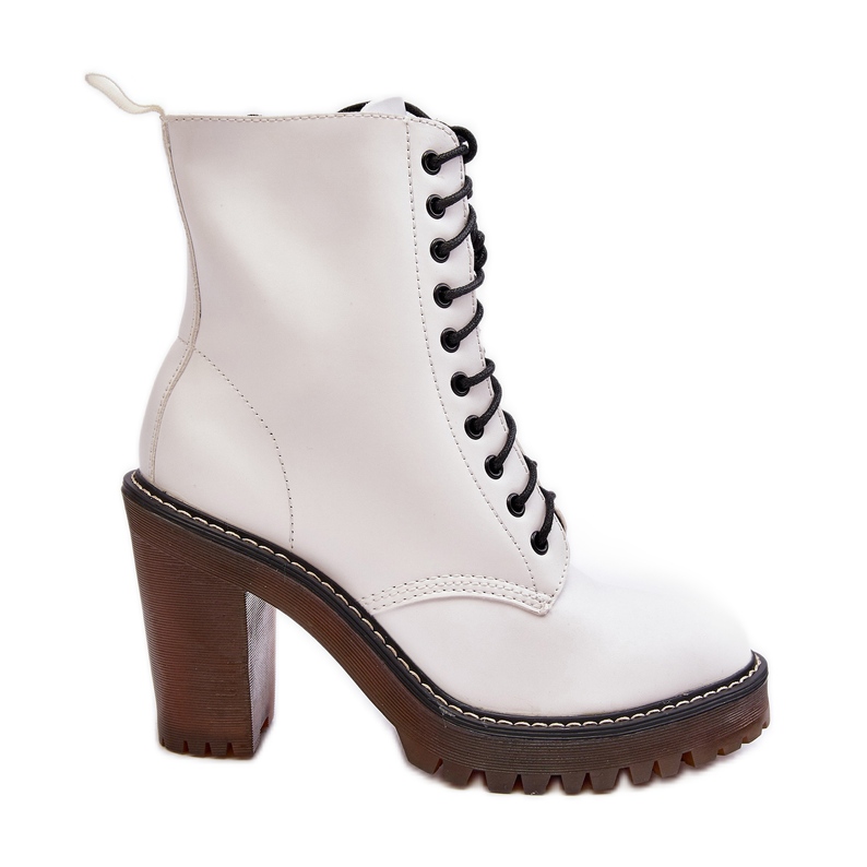 Elegantní a pohodlné boty Arove jsou návrhem na sezónu podzimní/zimní pro ženy, které si cení stylu a pohodlí. Vyrobeno z vysoce kvalitní ekologické kůže v klasické bílé barvě s jemnými černými akcenty, zasazenými na stabilním typu paty (10 cm). Model sáhne po kotníku, je připevněn praktickým zipem na boku a šněrování mu dává charakter a usnadňuje fit.