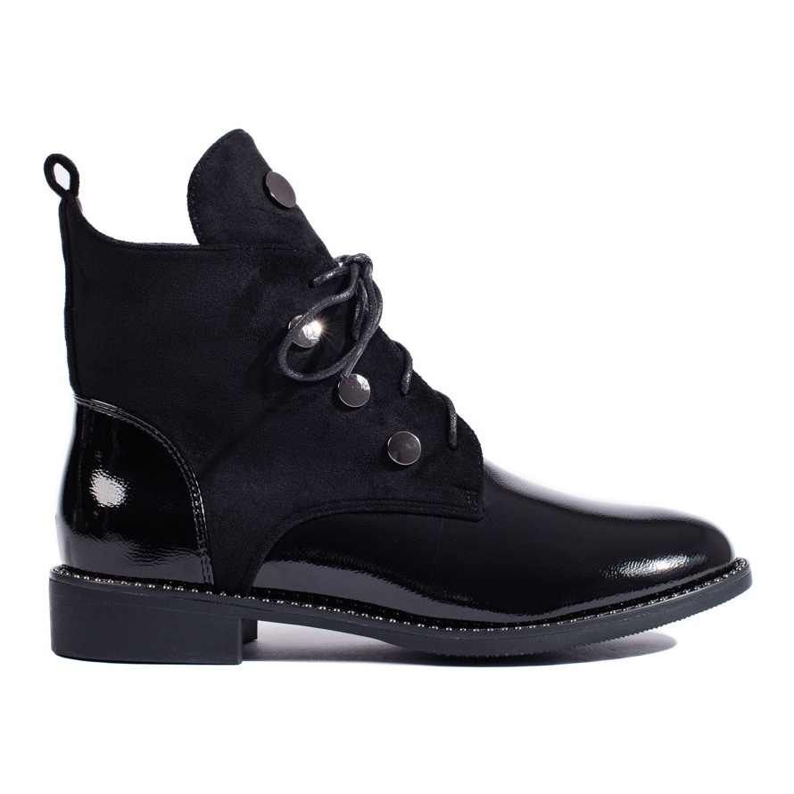 Inna marka Dámské šněrovací kozačky na plochém podpatku černá