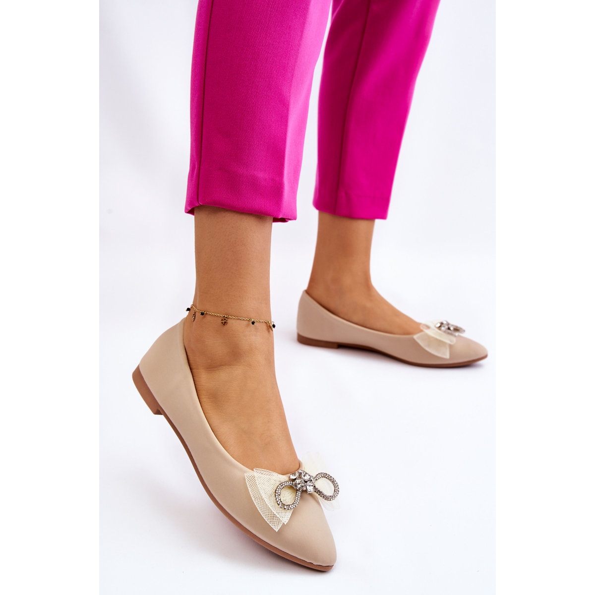 Inna marka Dámské špičaté baleríny s ozdobnou mašlí Béžová svítící béžový