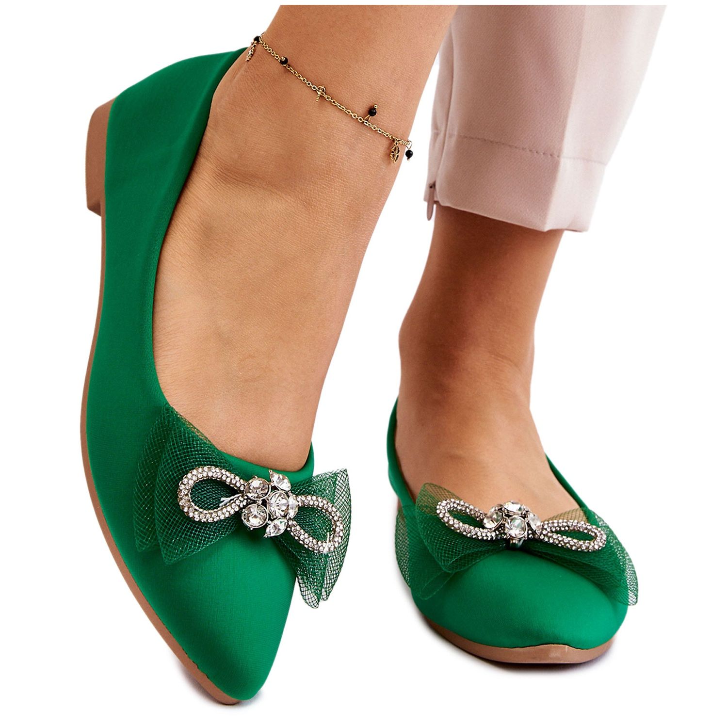 Podrobnosti: PS1 Dámské špičaté baleríny s ozdobnou mašlí Zelená svítící