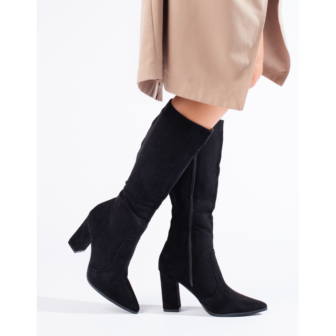 SHELOVET Dámské špičaté kozačky Shelovet z černého ekologického semiše černá