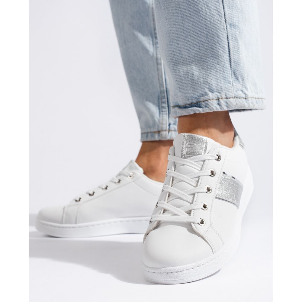 Tyto bílé boty vyrobené z vysoce kvalitní eko kůže jsou nejen stylové, ale také šetrné k životnímu prostředí. Kulatý nos a plný typ špičky zajišťují volnost pohybu prstů, což ovlivňuje pohodlí při používání. Látková stélka navíc zvyšuje požitek z nošení a zajišťuje správné větrání nohou.