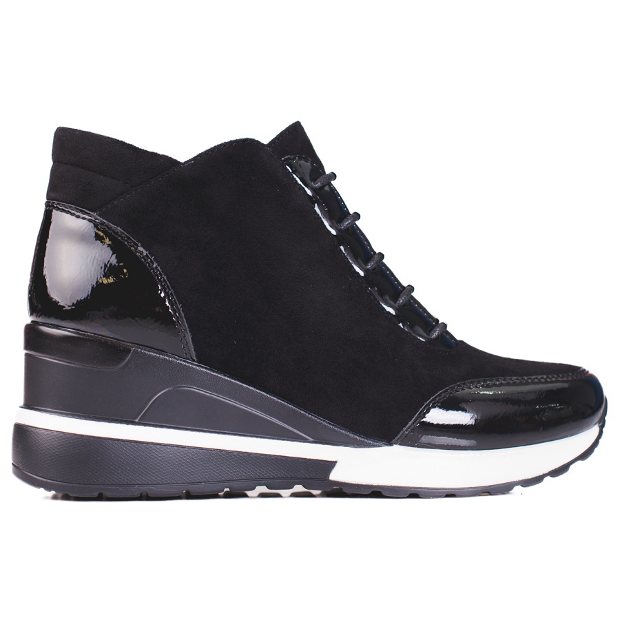 Dámské sportovní boty se zateplením Potocki v elegantní černé barvě jsou perfektní volbou pro chladnější dny. Tyto boty od renomované značky W. Potocki kombinují sportovní styl a ležérní charakter, díky čemuž jsou ideální pro každodenní výlety.